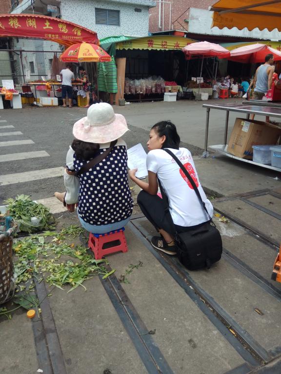 7月15日,实践队员到高埗镇各个村落派发调查问卷。按照两人一组的分组,到各个不同的繁华地段进行调研。虽然头顶烈日,同时路人也时有不耐烦,甚至遭遇冷眼,但各个队员毫不气馁,仍然保持良好的精神状态勇于询问。在调研过程中发现, “外来务工人员家中老人无法享受太多本地养老政策”,就这一发现,调研结束后小组成员后开展了热烈的讨论。