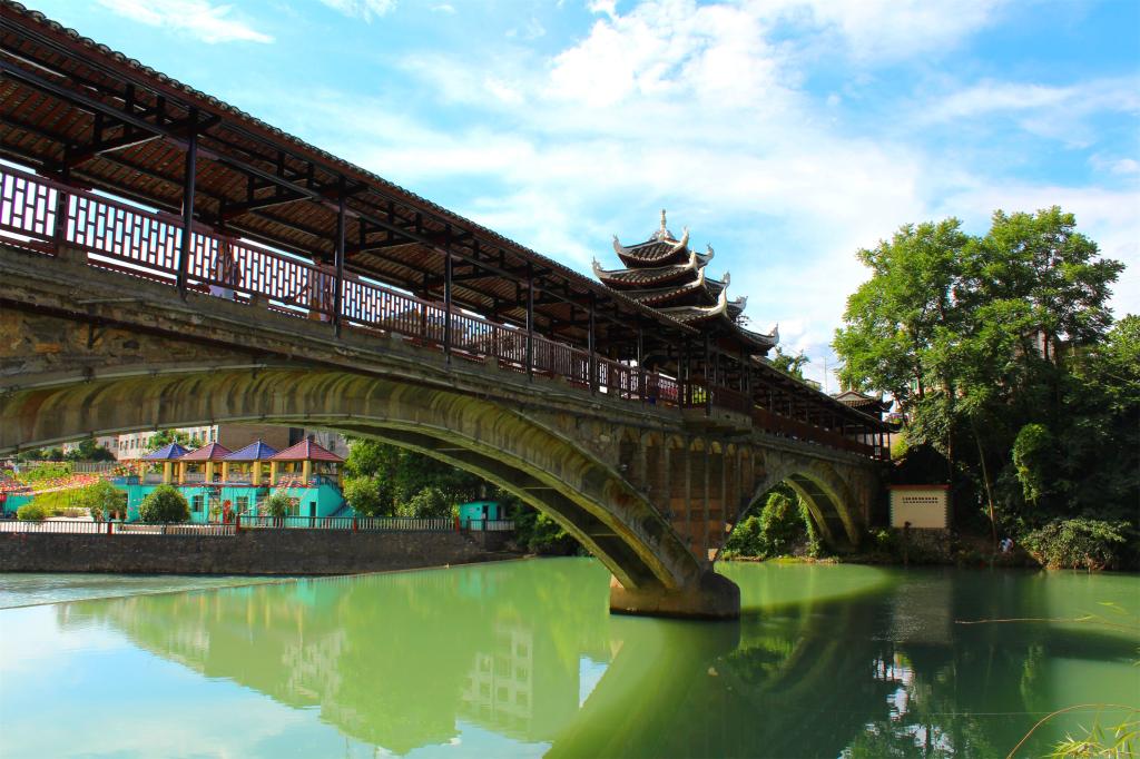 实践队的另一个目的地风雨桥为县里最大的风雨桥,因桥上建有廊和亭,既可行人,又可避风雨,故称风雨桥。值得一提的是,这座风雨桥并不是以前保存下来的,这也是令队员们惋惜的一个地方;而风雨桥的其中一种桥--飞凤桥则坐落在郊区,周围环境都保护得很好,桥上存在着很多字画,比前者要更具韵味。