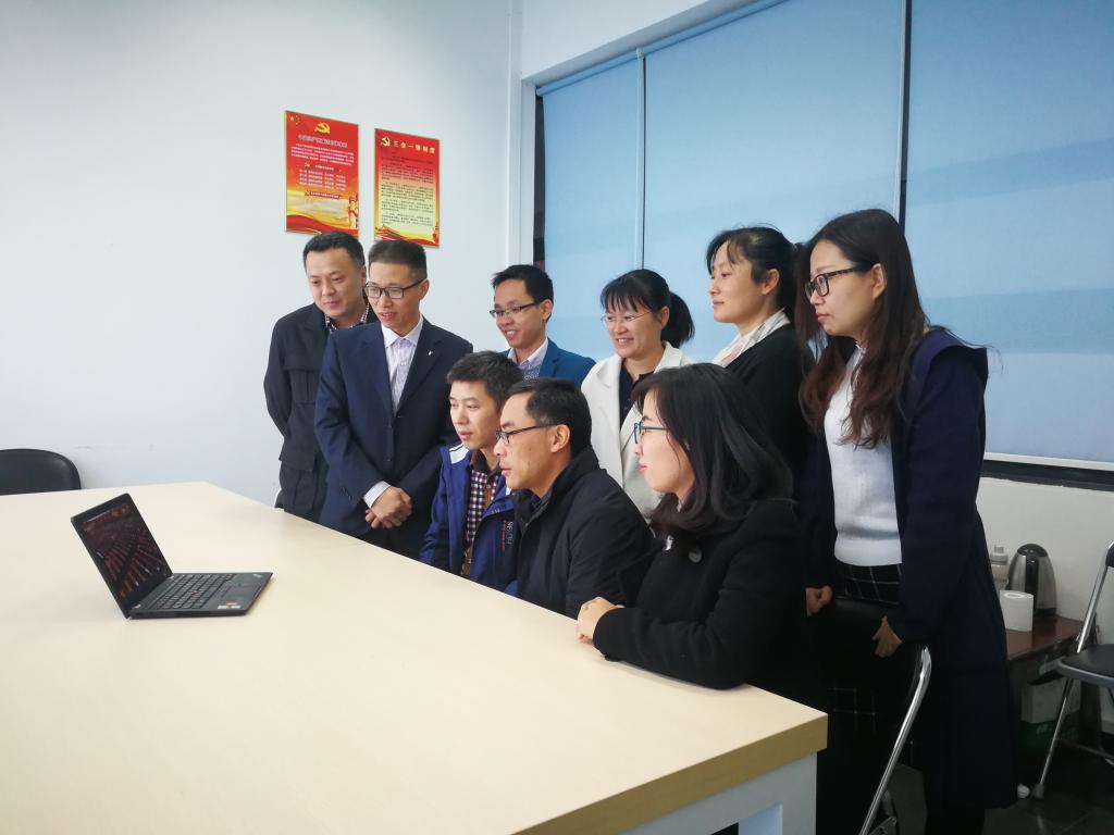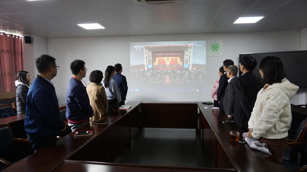 党委组织师生在工四202报告厅观看中央庆祝改革开放四十周年大会的直播盛况。