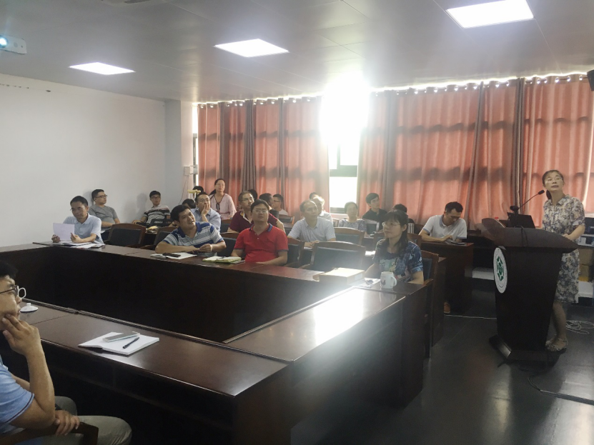 会上,郑育英老师强调了认证工作的几个关键环节,从工程教育认证背景知识、课程论文分析、实验报告分析、课程目标的达成度评价等方面,结合化工专业的实际情况做了具体讲解和简要培训。崔亦华老师针对试卷分析部分,主要包含成绩分布表、难度系数与区分度、课程教学目标达成情况、试卷整理规范要求等内容进行了详细说明与指导。