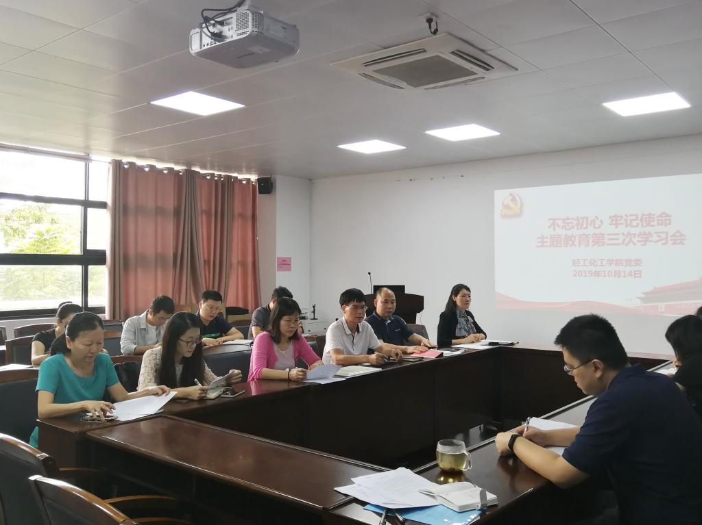 于10月14号上午在工学四号馆202会议室召开“不忘初心、牢记使命”主题教育第三次集中学习会,学院领导、党委委员、党支部书记以及全体辅导员参加此次会议。会议由学院党委书记周东斌同志主持。