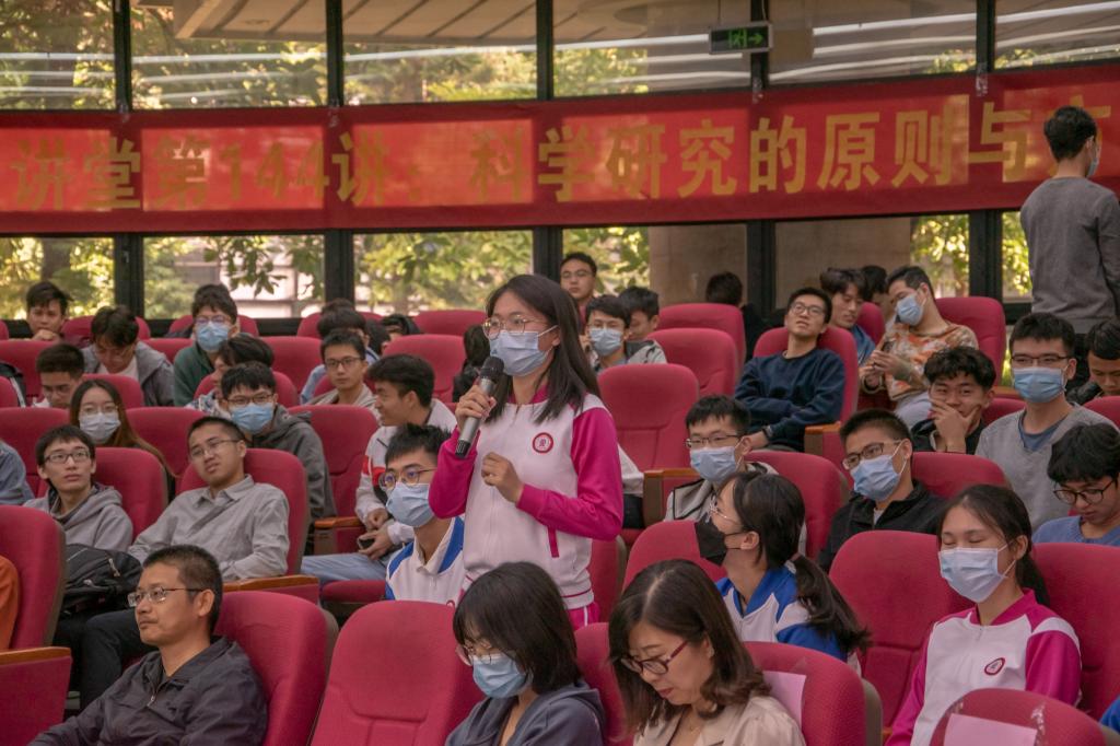 互动环节,同学们积极提问,祝京旭院士耐心地为同学们答疑解惑,并嘱咐同学们一定要在大学生活中坚守初心,牢记使命,保持昂扬向上的积极心态、脚踏实地的工作作风、追求卓越的精神品格,勇做堪当重任的时代新人。