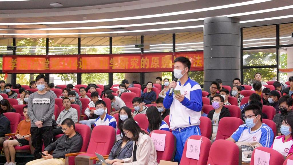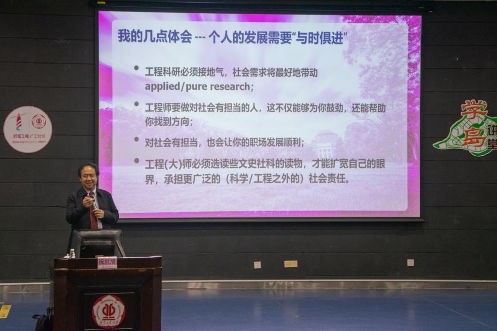 祝京旭院士以“科学发展与人类进步的关系”为切入点,指出人类进步的历程与科技发展是密不可分、互相促进的,我们应当怀有历史观、时代感、责任心,并且要将个人的发展融入到社会,以社会需求为己任。并通过讲述自己科研生活中的三个具体事例,向同学们分享相应的科研方法,鼓励同学们要在大学学习生活中不断发掘自己的兴趣所在,努力学习,成为堪当民族复兴重任的时代新人。