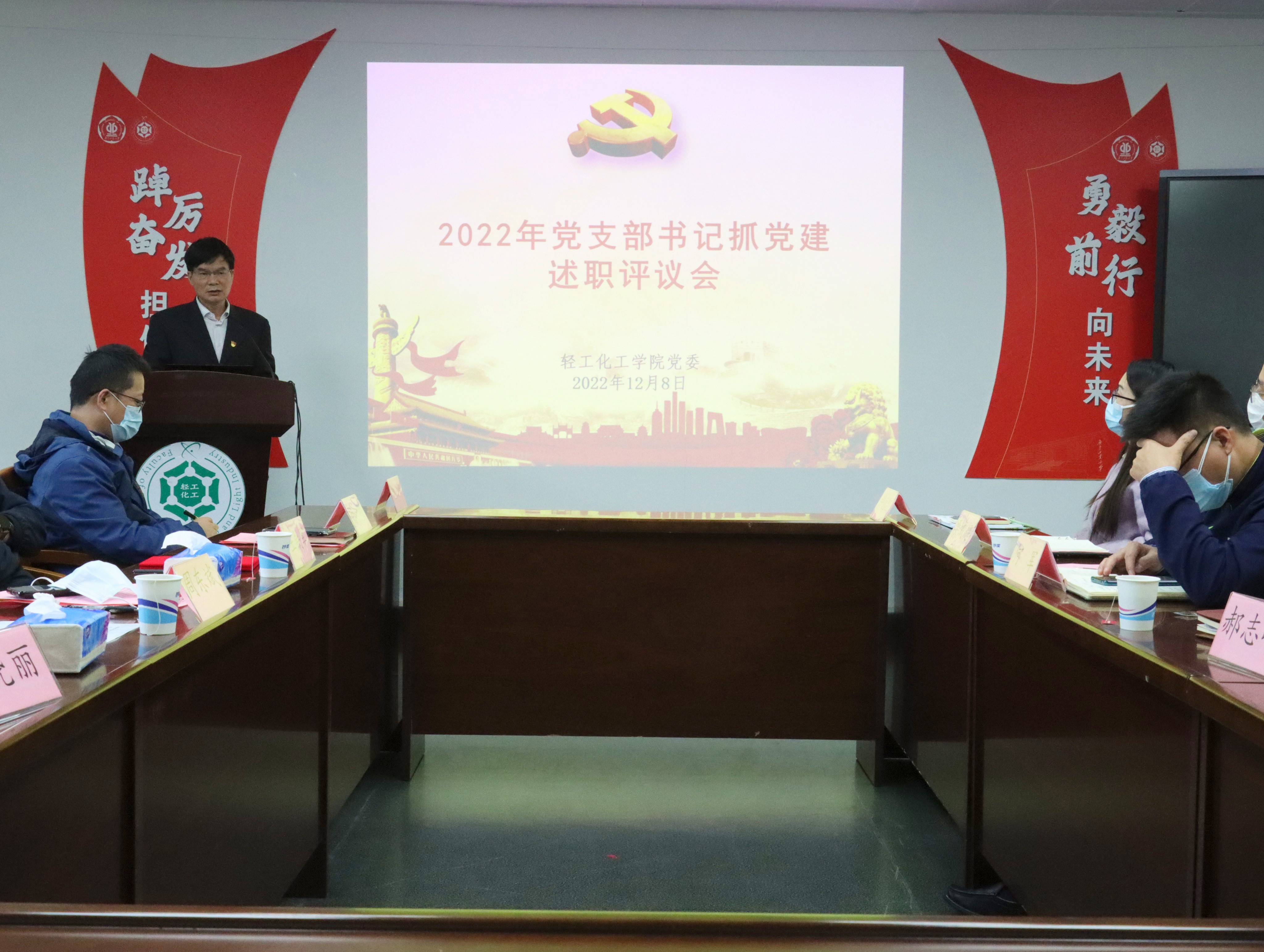 于工学四号馆202会议室召开2022年党支部书记抓党建述职评议会。学院党委委员,各党支部书记参加了本次会议,会议由学院党委书记周东斌主持。