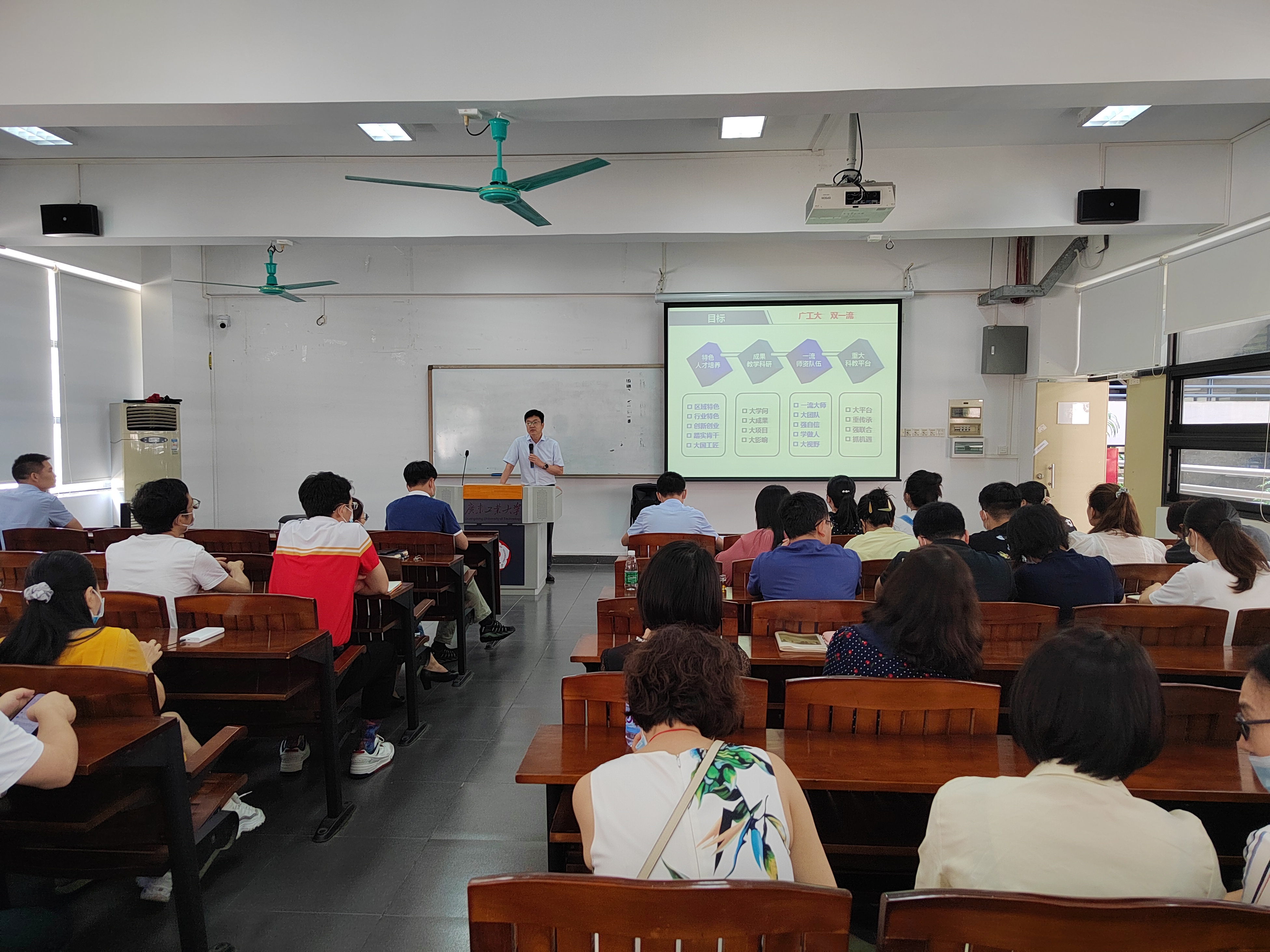 学院院长王铁军结合“1+2+3”攀撑计划建设任务为老师们介绍了学院未来发展的思考和规划,他提出学院将着重从特色人才培养、教学科研成果、一流师资队伍、重大科教平台等四个方面推进学科建设高质量发展。他强调,“广工有‘天时’有‘地利’,这是我们奋进新征程的优势所在、信心所在、底气所在!”学院全体教职工要抢抓粤港澳大湾区建设重大历史机遇,扎实推进“1+2+3”攀撑计划,奋力开创学校高水平创新型大学建设新篇章。