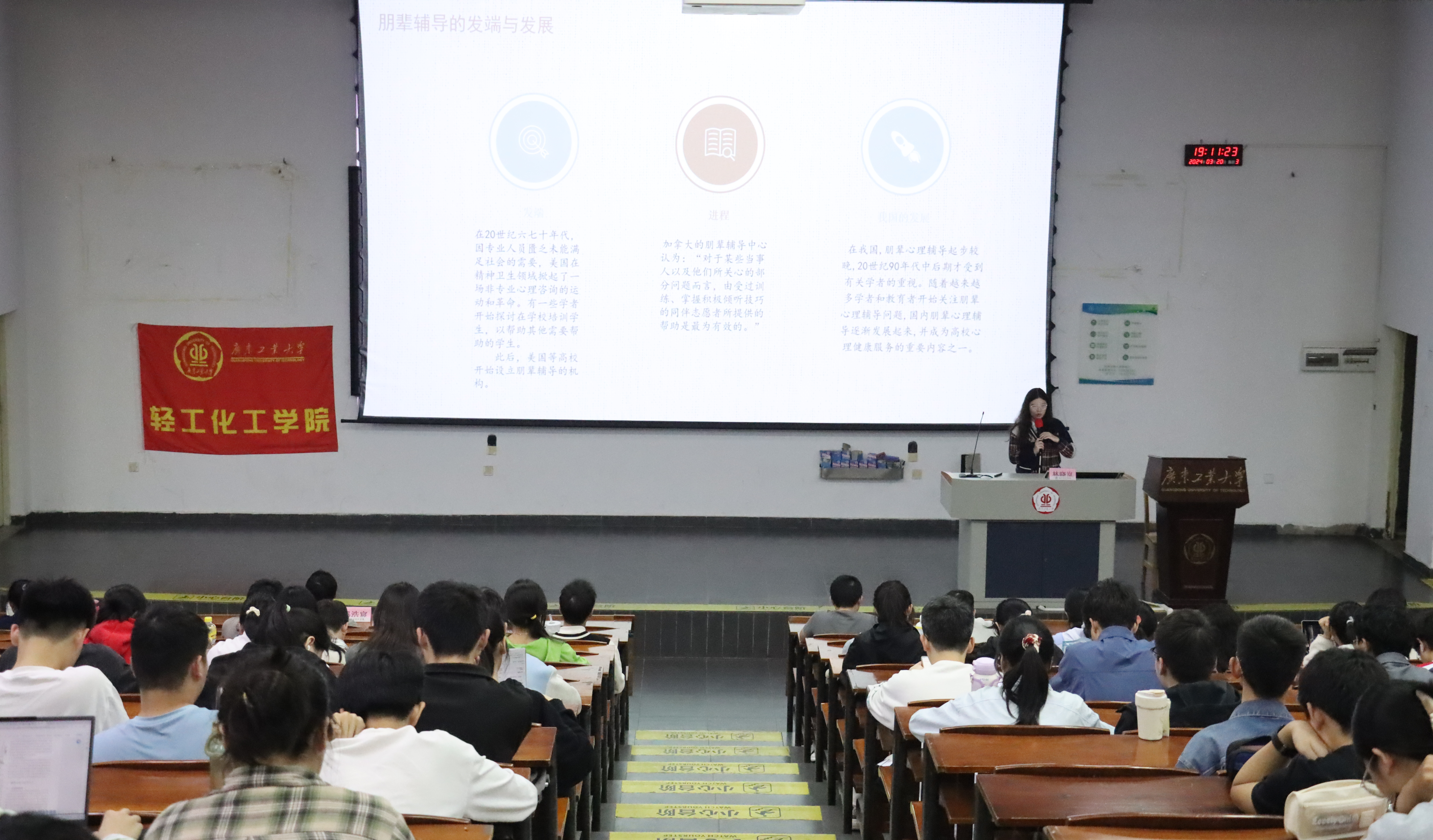 会上,林晓岚老师首先以“心理委员是什么”为切入点,对现场的心理委员与宿舍信息员进行提问,引发台下同学的思考。接着,她引出“朋辈辅导”的概念,并以“什么是朋辈辅导”展开新的话题。林晓岚老师分别从朋辈辅导的开端与发展,定义和现实意义三个方面向心理委员与宿舍信息员进行解释,使他们明晰自己的工作定位,培养其积极倾听、问题解决的技巧,对需要帮助的学生提供倾诉、支持或咨询的服务。