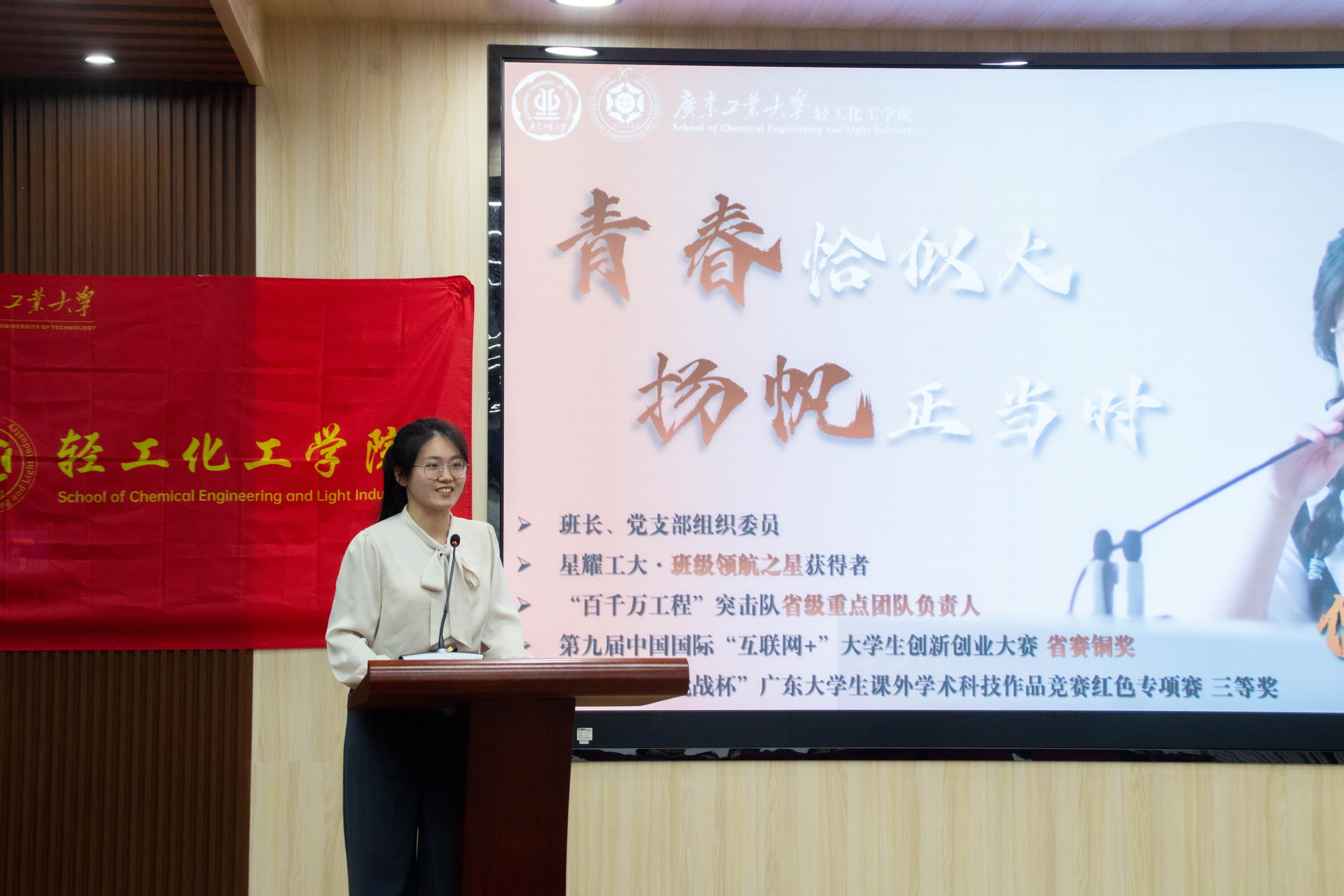 倪银萍同学向大家介绍了她对班级的建设以及参加文体、实践活动的经验,强调班级骨干的引领与榜样作用,启发同学们要以身作则,共同建设优良学风,鼓励同学们积极参加各类活动,增强自身的综合实力,也希望大一同学们要学会适当的放松,减轻压力,最后将自己的座右铭“跟着光,成为光,发散光”分享给大家,激励同学们积极向上,向光而行。