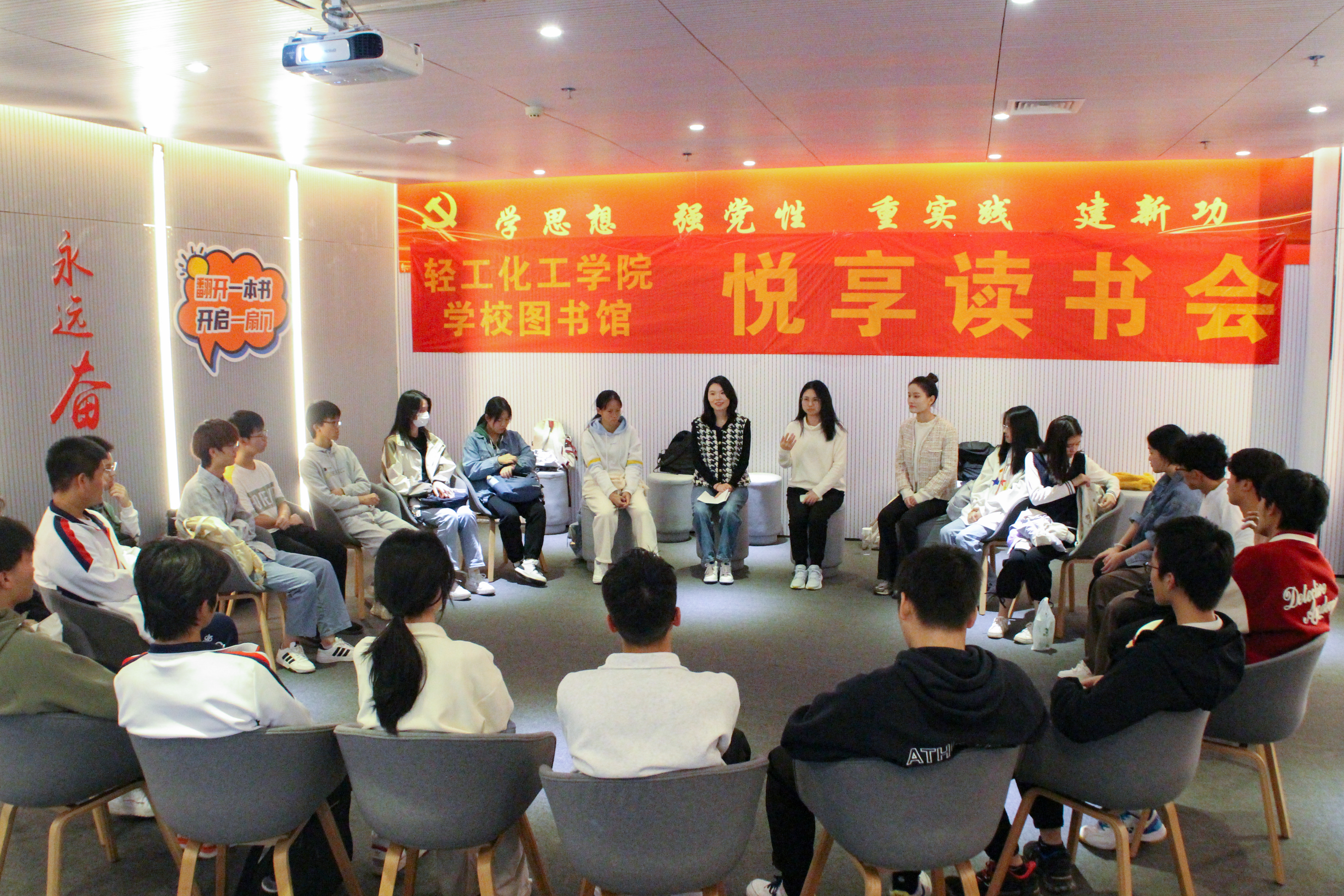将持续携手学校图书馆,坚持以问题为导向,推进思政育人、文化育人工作,引导学生学而思、思而行、行中悟、悟中学,学思践悟、知行合一,为高水平创新型大学建设贡献“轻”春力量。