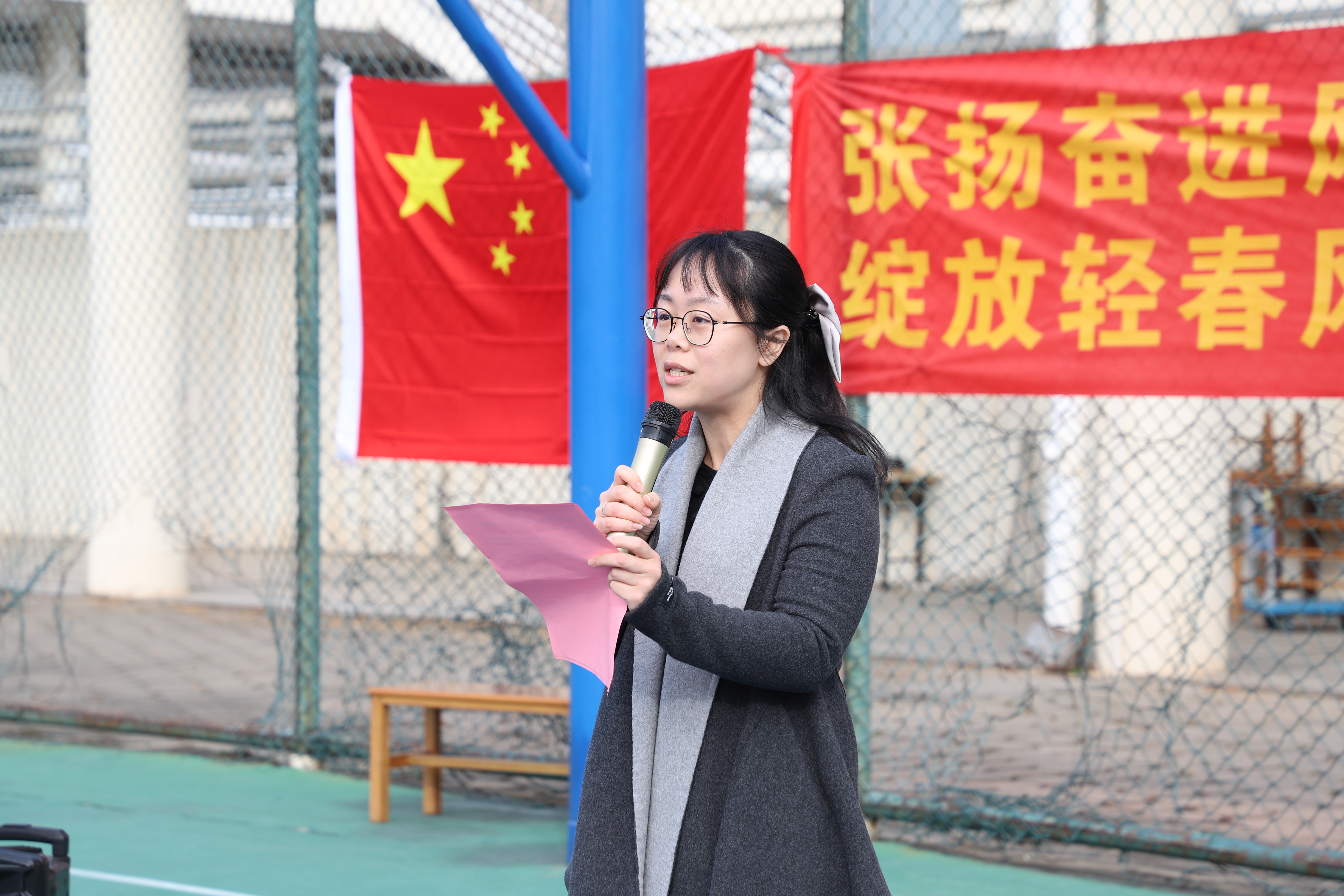 随后,学院学生会秘书长徐丹宁老师宣布首届“四球”班级联赛正式开幕。徐丹宁老师表示在学院党委和学校团委的正确领导与亲切关怀下,在学院团委、校学生会的大力支持和广大同学的密切配合下,一届精彩纷呈的“四球”班级联赛即将拉开帷幕。希望各位运动员弘扬体育精神,焕发青春力量,合力绘就轻化学子拼搏向上的崭新画卷。