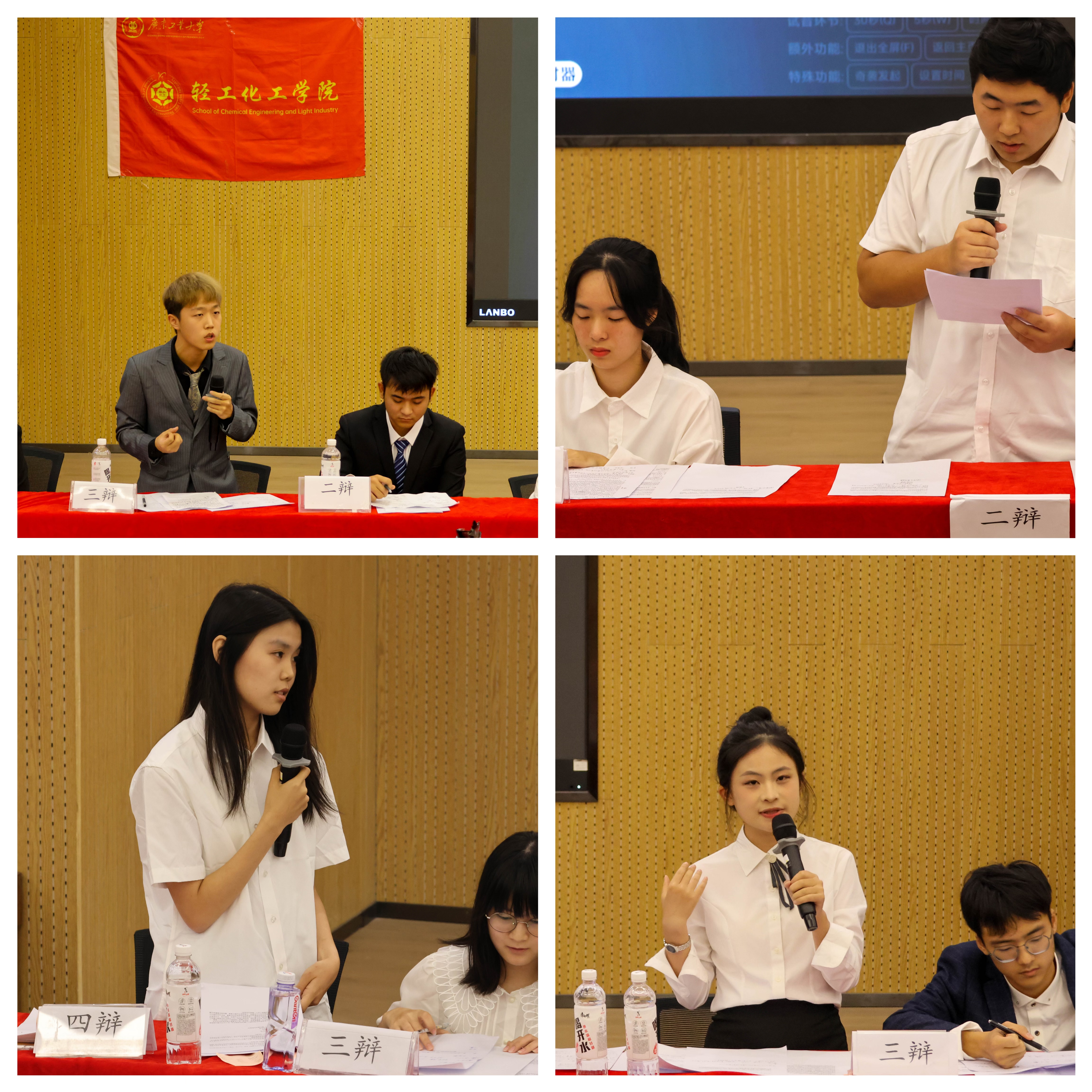 2019级辩论队队长刘嘉聪,2021级辩论队队长康思宇、张佳维、梁乐声,2022级辩论队队长潘越,本次比赛吸引近100名学生参加活动。