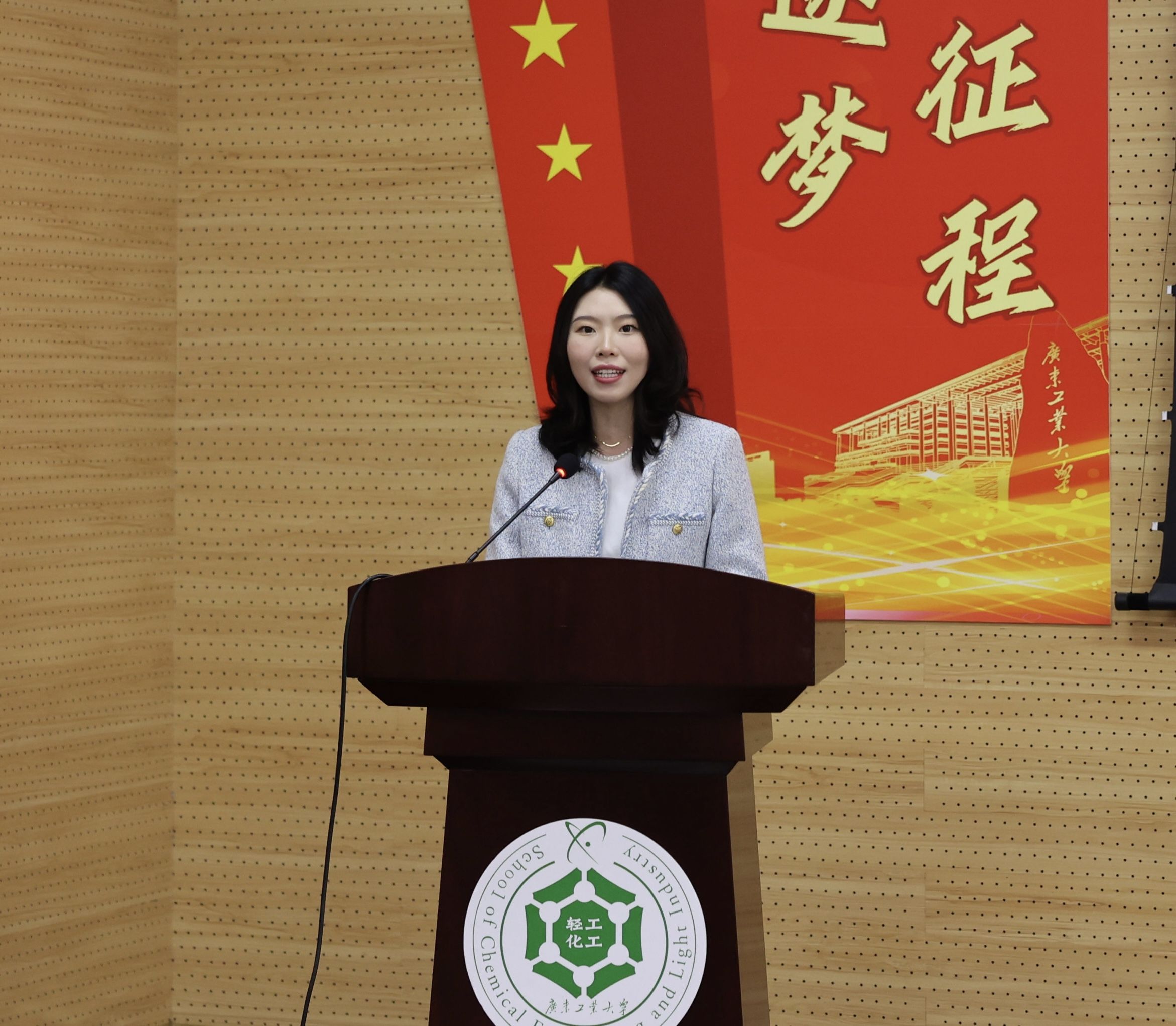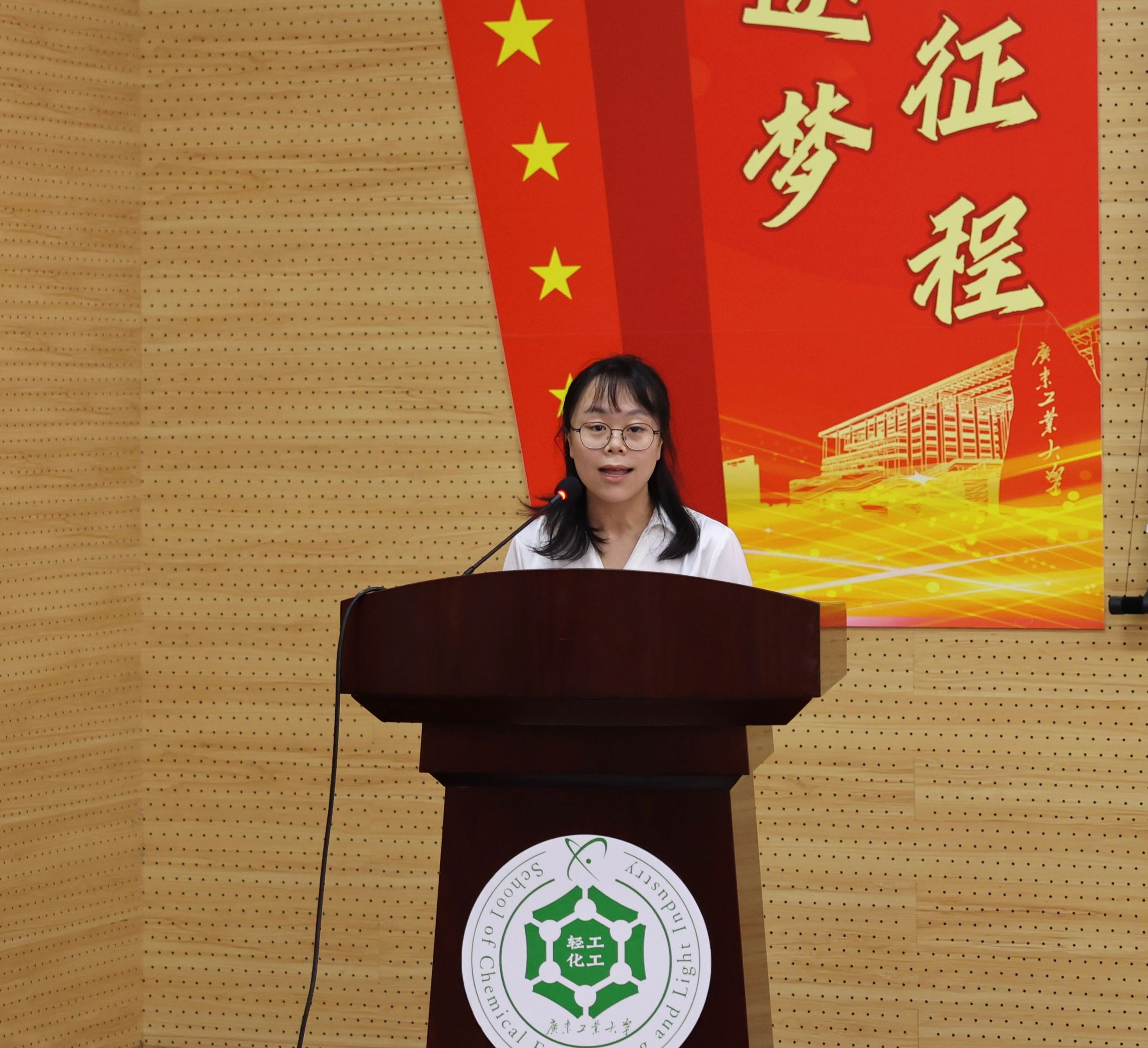 学生会主席团成员黎业彤作学生会工作报告,从深化改革、思想引领、权益服务、学业发展、文体发展五个方面总结上学年的工作并展望新学年新工作,表示将持续加强校-院-班三级联动,进一步协助学院开展“轻苗化才”学生骨干培训营、“轻语于心,话出共鸣”师生座谈会、悦享读书会、优秀校友面对面、“四球”班级联赛等特色活动,以“少年应有鸿鹄志,当骑骏马踏平川”的决心和信念做好本学年的工作,继续在“轻”春的赛道上跑出“轻化”加速度。
