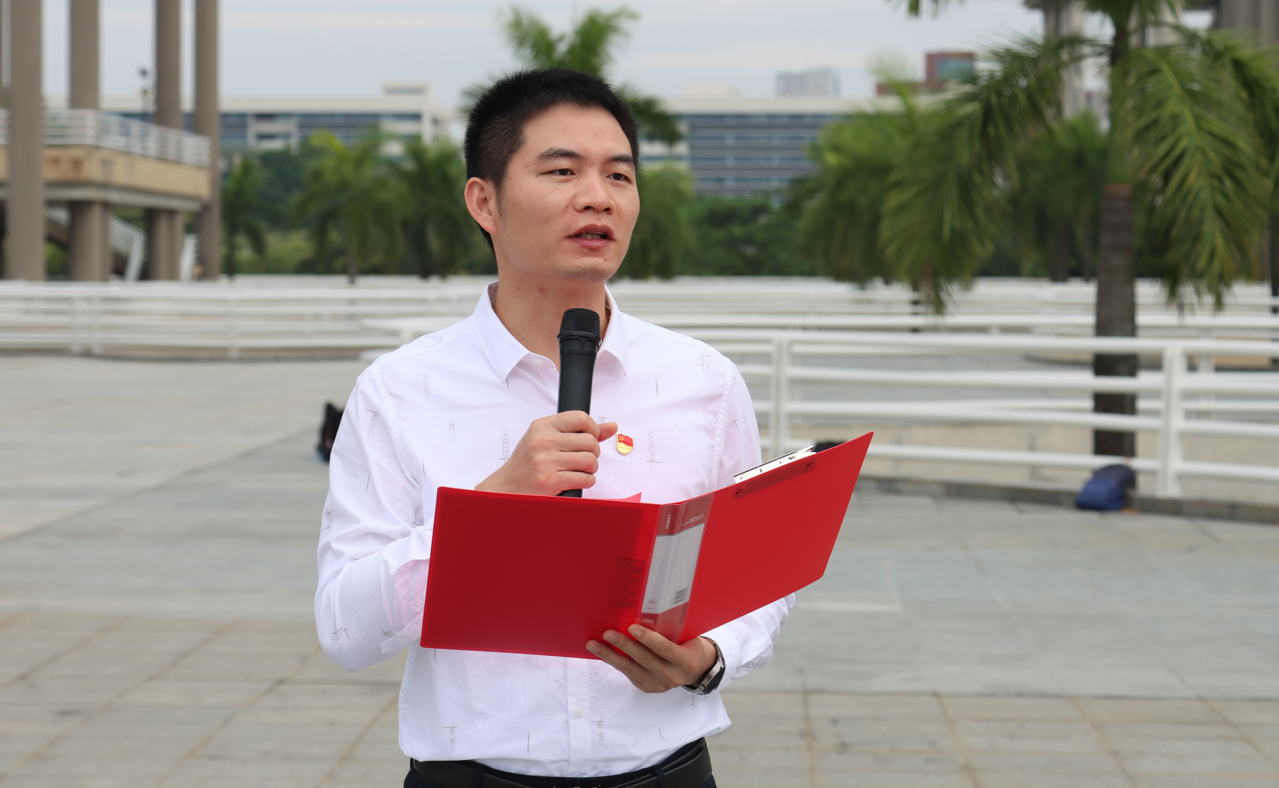 2023级化学工程与工艺创新班易政鹏同学以“逐梦新起点,强国勇攀撑”为主题作国旗下发言,代表全体同学做出庄严承诺,一定会不断追逐梦想,勇敢攀撑,从小事做起,从当下做起,在这个充满机遇和挑战的时代,献出属于广工学子的时代答卷。