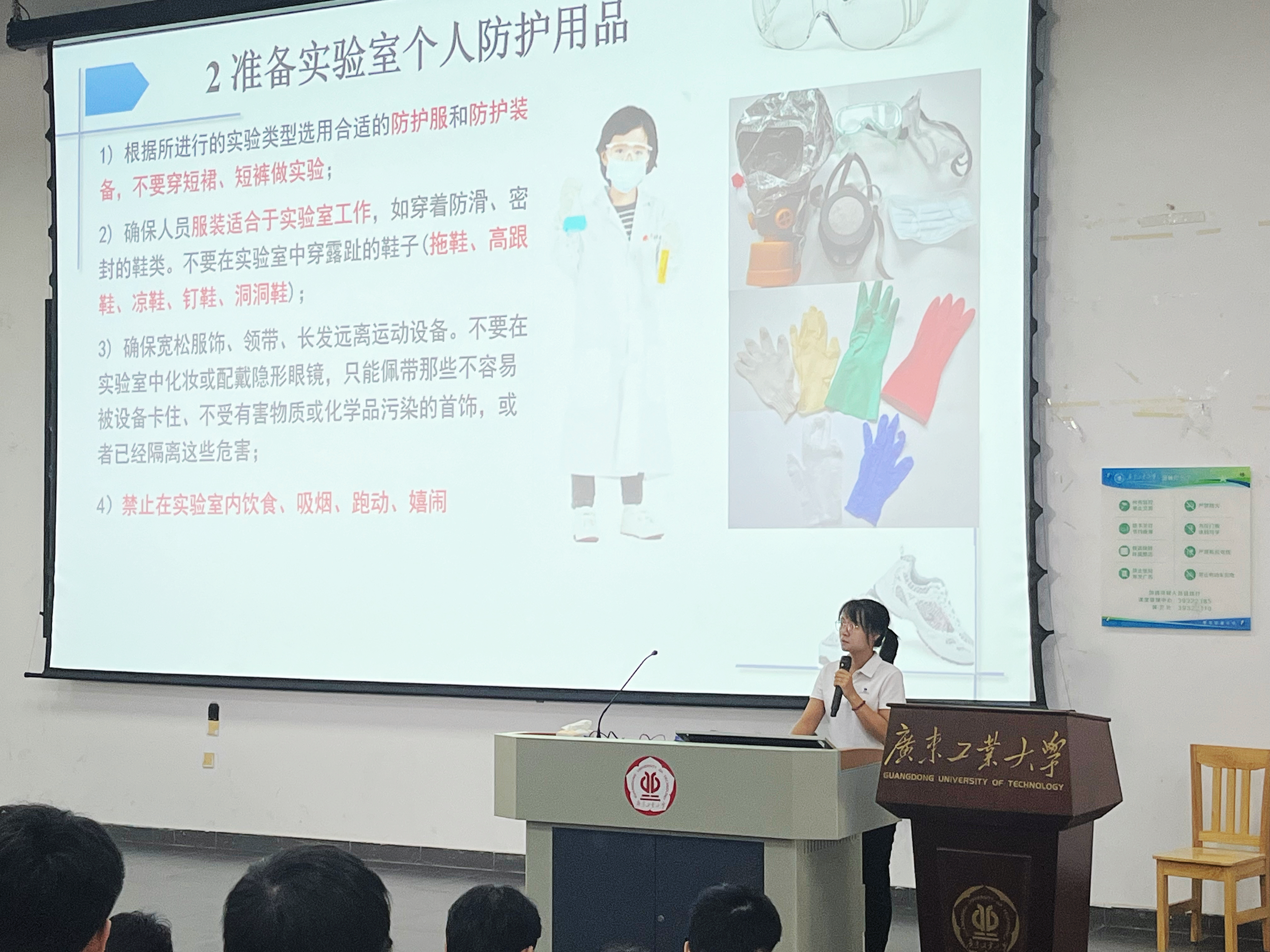 于9月6日开展2023级新生实验室安全培训。实验中心蒋家巧老师从进实验室前的准备、实验室安全及危险源、高校实验室安全事故、学院实验室安全管理方案等多个方面展开了培训讲座。生命高于一切,安全重于泰山——通过本次讲座强调实验室安全的重要性,新生们意识到降低安全风险的必要性,为后续实验课与科研开展提供了安全保障。