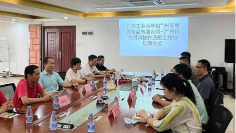 为了贯彻落实广州市科技局关于科技特派员的工作部署,推动广州市农业科技特派员继续深入田间地头,引导科技要素和资源向农村有序流动,8月28日,动漫狂 党委书记周东斌率队赴广州粤派食品有限公司(以下简称“粤派食品”)开展“广州市农村科技特派员工作站”挂牌仪式并召开合作交流座谈会。学校科学研究管理部副处长朱艳、科学研究管理部穆淼、产业技术研究与开发院叶绍恩、轻化学院副教授、科技特派员陈林等老师参与了本次活动。