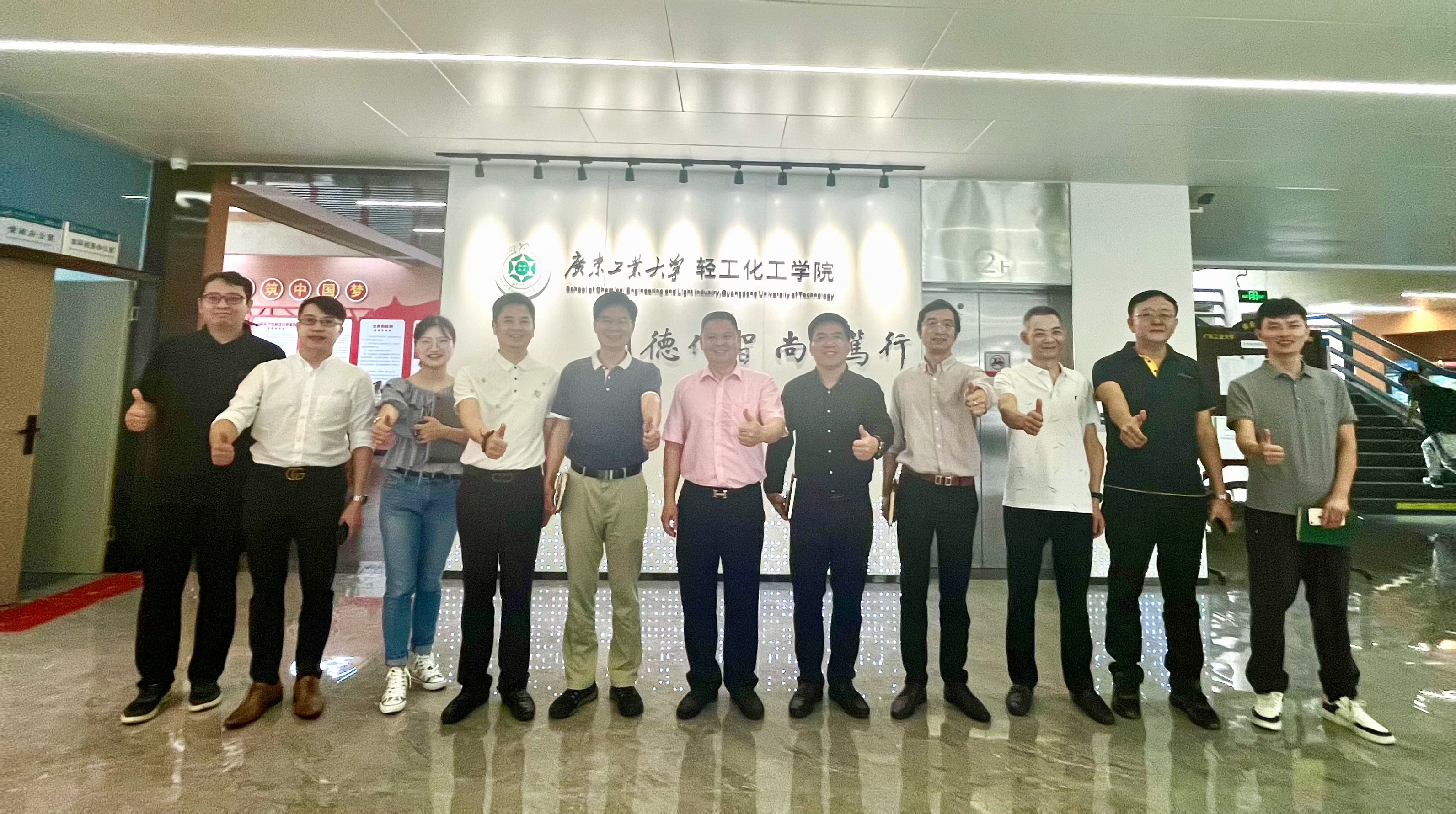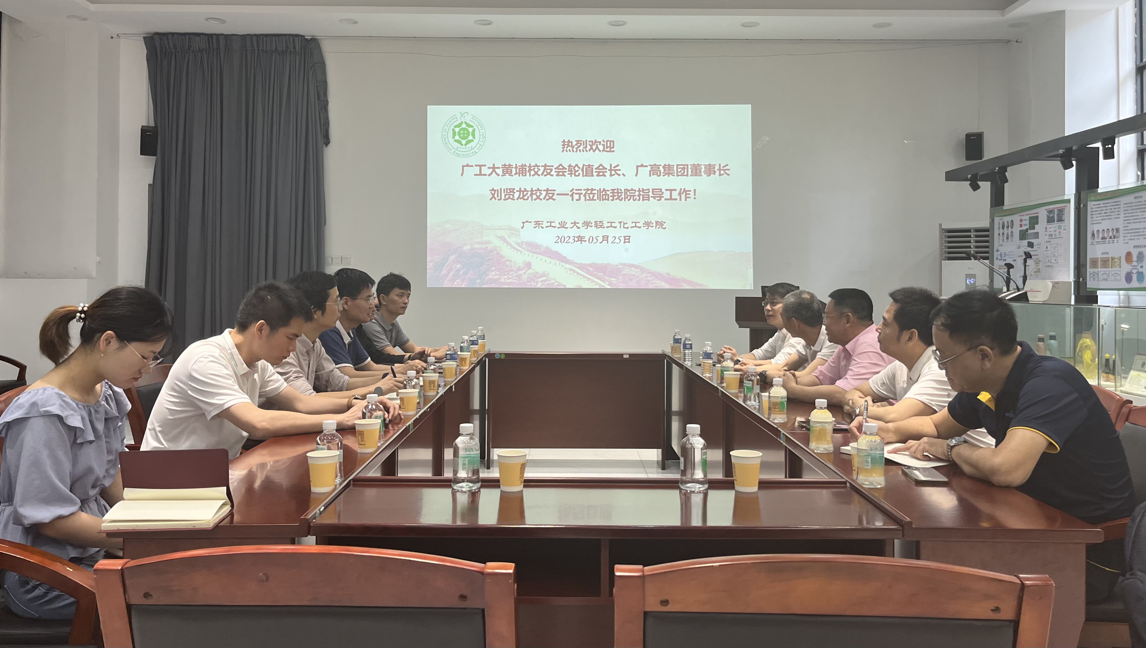 座谈会上,周东斌代表学院对刘贤龙董事长一行的到来表示热烈欢迎,并从学院党建情况、师资队伍、学科建设、人才培养、服务社会等方面,与刘贤龙董事长一行分享了学院近年来所取得的成就,并对院企今后的合作进行了展望。刘贤龙感谢学院的热情接待,他介绍了公司的概况、最新的产品研发以及今后的发展规划,希望可以与学院在氢能的材料研发等方面开展合作。黄埔校友联络处秘书长胡炜斌介绍了黄埔校友联络处“1359”发展格局,并在提高食品安全和提升食品口味方面,与食品科学工程系王萍萍老师展开了讨论,希望拓宽与学院的产学研合作。李成超和张山青教授分别就新能源材料的研究进展与科研成果进行了介绍,并希望同企业达成科研上的合作共进。