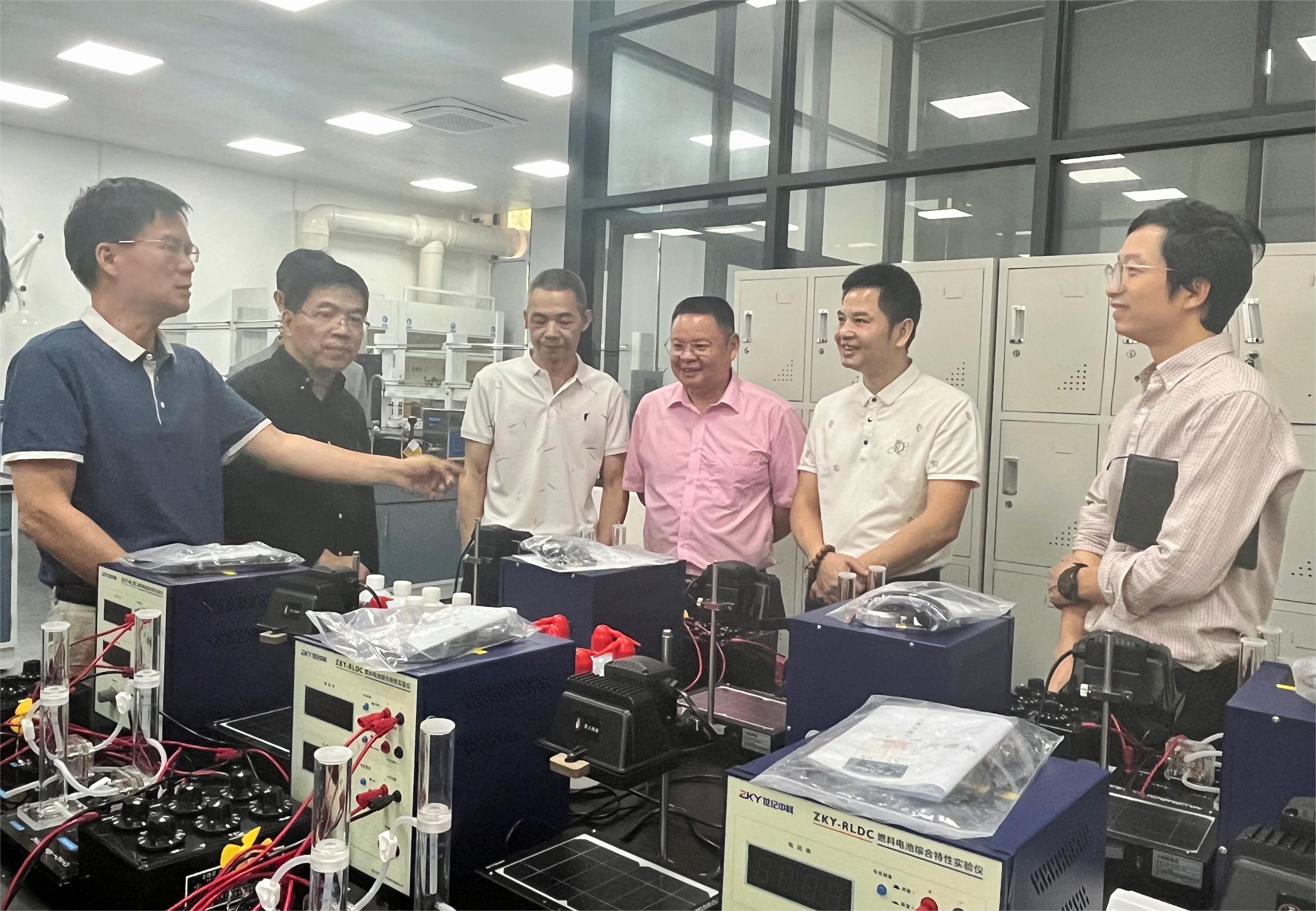随后,在学院领导、老师的陪同下,刘贤龙董事长一行参观了学院能源化工教学实验室,就材料制备成本、仪器测试、储氢温度等问题展开讨论,并达成初步的合作共识。