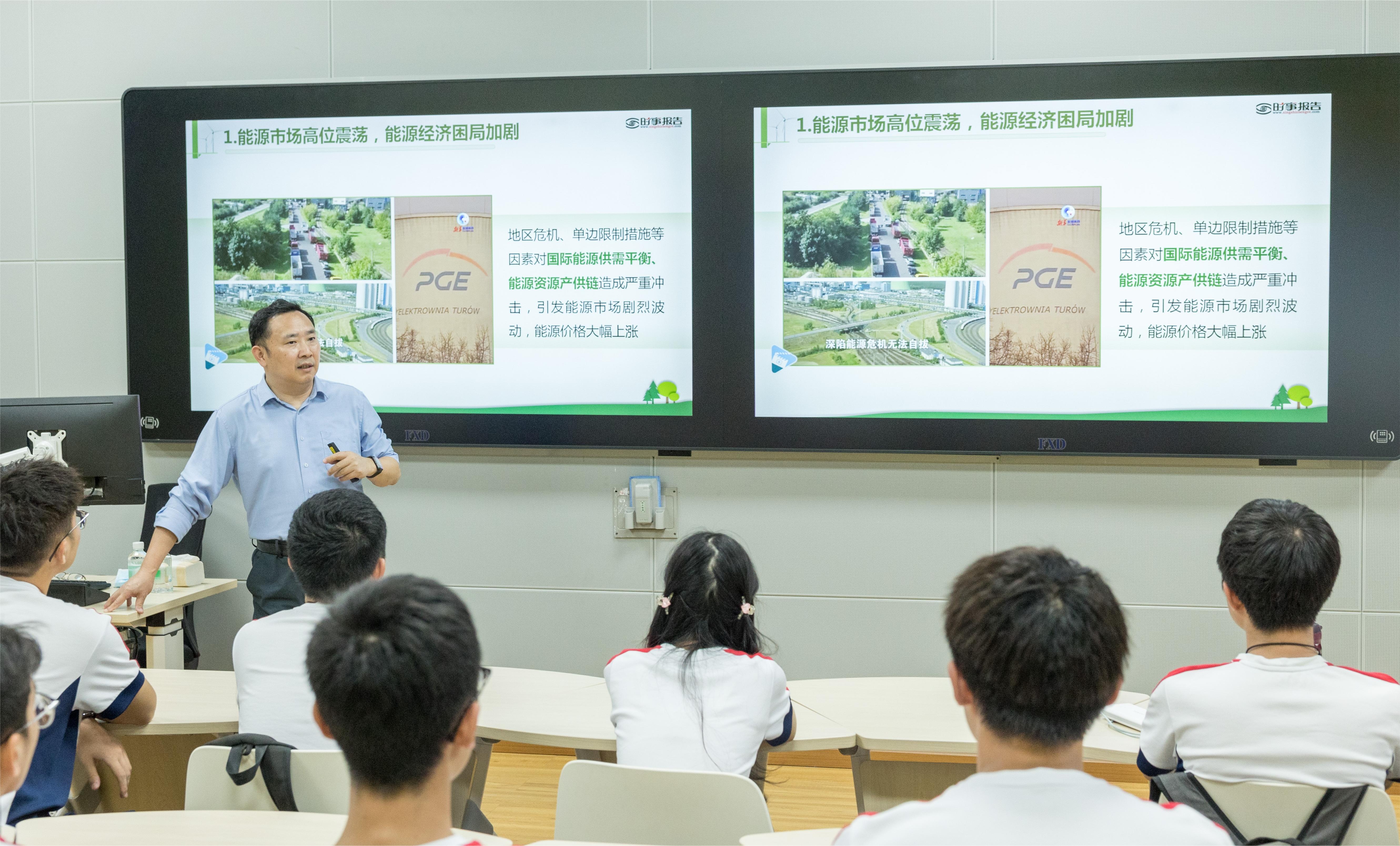 2023年5月16日下午,学校副校长余林教授在大学城校区教学楼六号楼智慧课室201动漫狂 2022学生讲授以“国家双碳政策的现状及新能源电池的发展”为主题的《形势与政策》课。