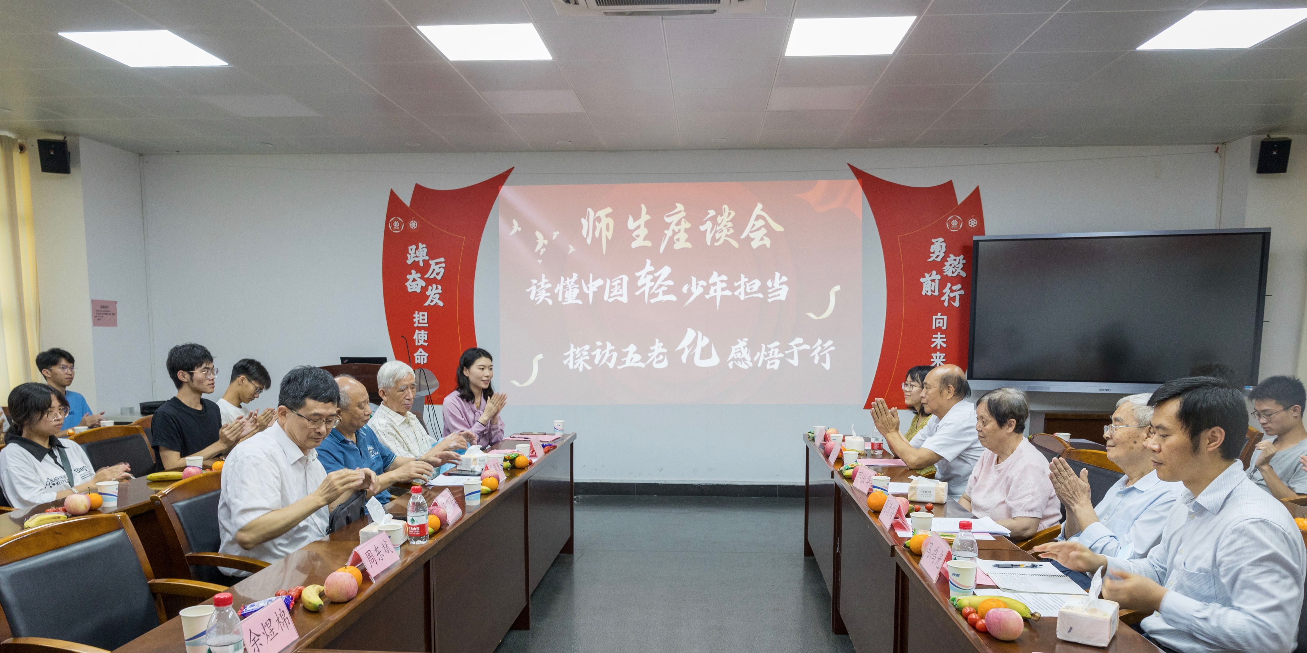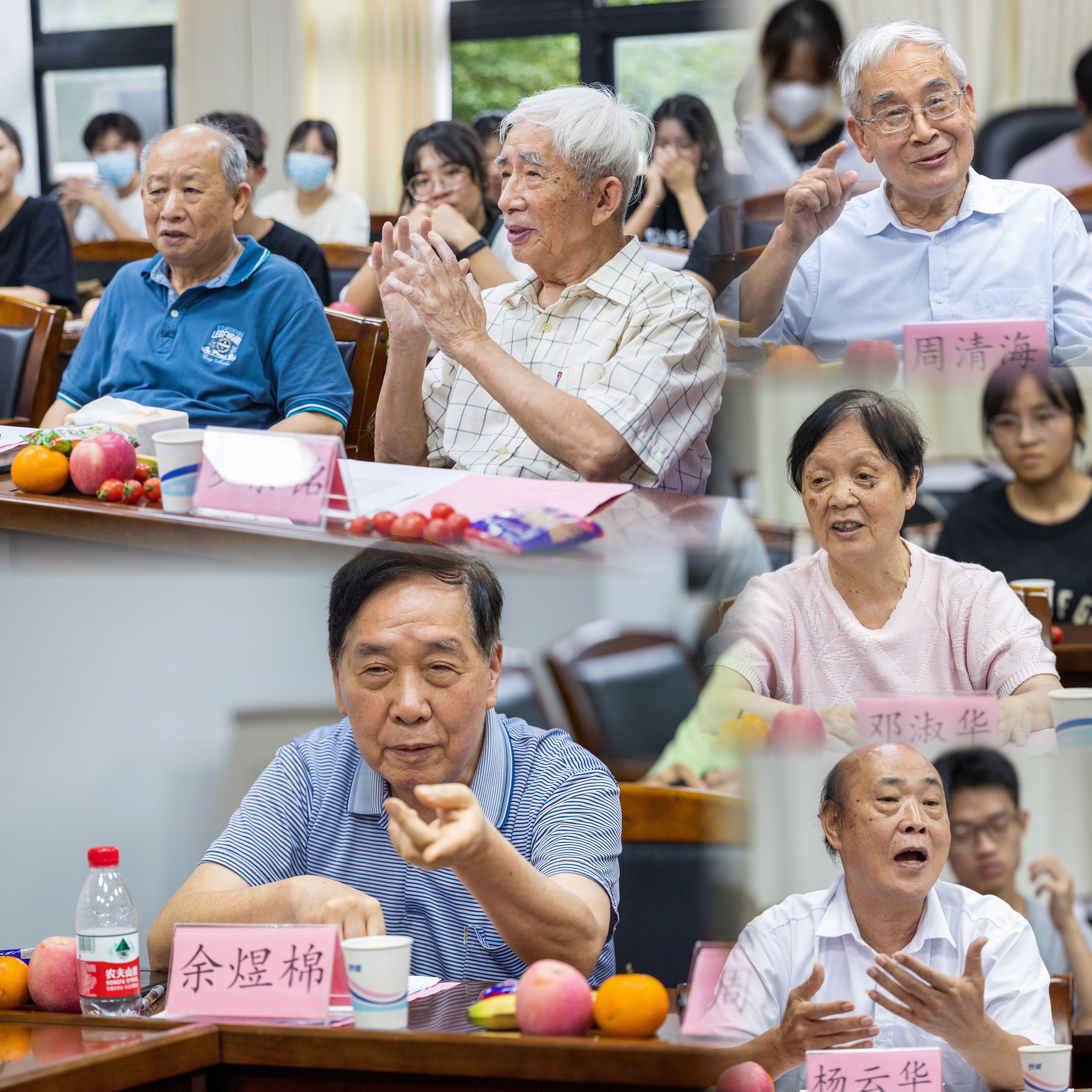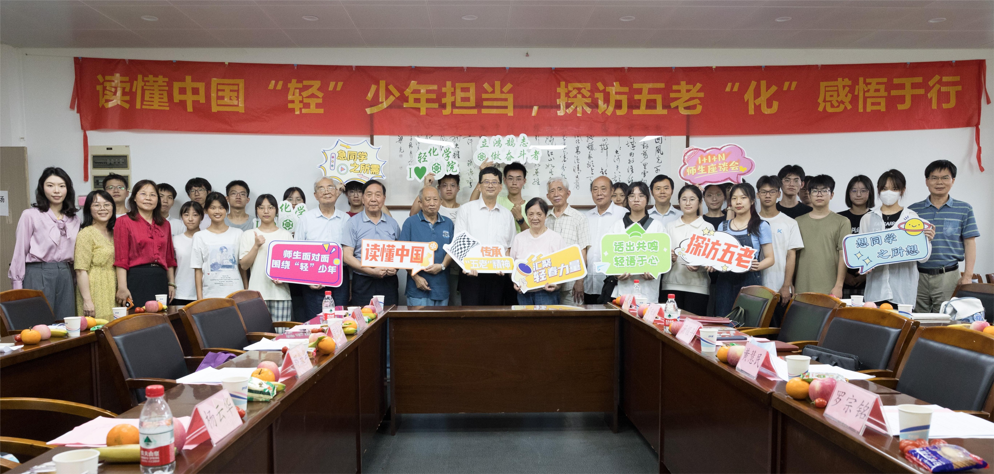 结合“轻语于心,话出共鸣”师生座谈会品牌活动,开展传承“五老”精神·汇聚“轻”春力量主题座谈会。学校关工委副主任汤耀平教授,原副校长黄慧民教授,原学校实验中心主任余煜棉教授,原学院化工系系主任罗宗铭教授,原学院分析化学教研室主任周清海教授,原全国模范教师、学院化工原理教研室主任邓淑华教授,原学院食品系教师、现离退休第二党支部书记杨云华老师等6位“五老”代表,学院党委书记周东斌老师,副院长郑育英教授,学校关工委副秘书长冯鸿光老师,学院团委负责人李韵捷老师和学生代表共40余人参加本次活动。座谈会由学院学生会秘书长徐丹宁老师主持。