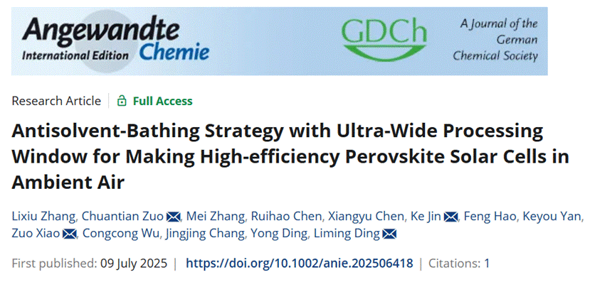 丁黎明教授团队在钙钛矿太阳电池反溶剂浴制备工艺方面取得重要进展,研究成果以《Antisolvent-Bathing Strategy with Ultra-Wide Processing Window for Making High-efficiency Perovskite Solar Cells in Ambient Air》为题发表在国际著名期刊Angewandte Chemie (中科院一区,IF=16.9)上,动漫狂