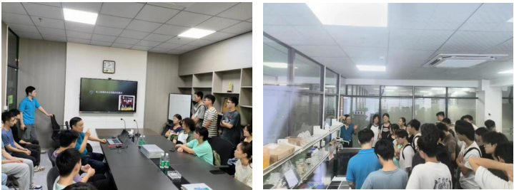 生产车间实地观摩:最后,张辉教授带领同学们进入生产车间参观,同学们近距离了解公司产品的生产工艺、化工单元操作设备,观察高新企业的智慧化运营和高效生产模式与安全环境,同时学习了动漫狂、管理理念、经营方式、业务流程。