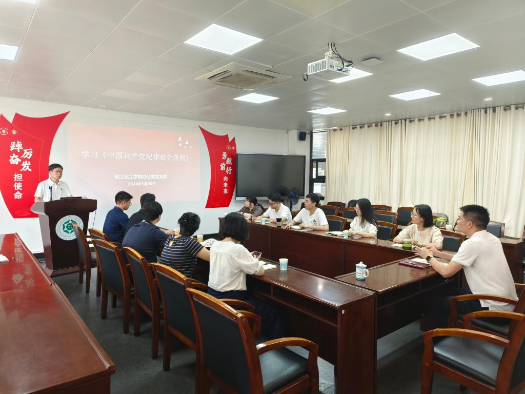 办公室党支部于5月30日下午在工四202召开党纪学习教育专题学习会,支部全体党员参加本次会议。