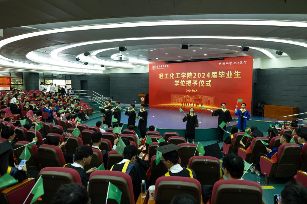 2024届毕业生学位授予仪式至此圆满结束!”全场响起热烈的掌声!愿轻化学子走出校门,牢记“团结勤奋,求是创新”的校训和“明德化智,尚工笃行”的院训,在追求真理的道路上阔步前行,传承广工精神,汇聚蓬勃的“轻”春力量。