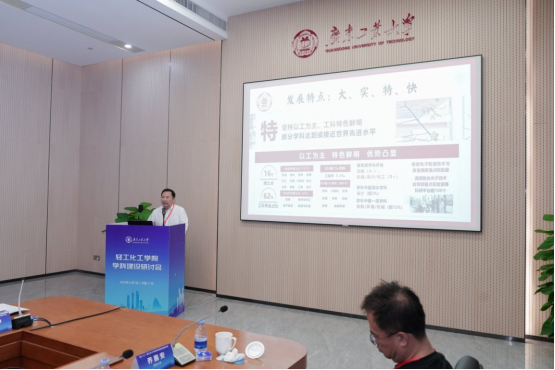 学科建设研讨会在大学城校区第一会议室举行,邱学青校长、余林副校长出席会议。来自中国科学院化学研究所李玉良院士、华东理工大学朱为宏院士、北京大学刘志伟教授、西湖大学刘志常教授、中科院上海有机所李霄鹏研究员,以及上海交通大学、吉林大学、南方科技大学、中山大学、华南理工大学、郑州大学、中科院深圳先进院等国内外知名高校和科研机构的26位专家学者齐聚一堂。与会人员围绕轻工化工学科建设的特色优势、发展机遇与挑战,以及多学科协同创新路径进行了深入研讨,共同助力学校学科建设迈向更高水平。