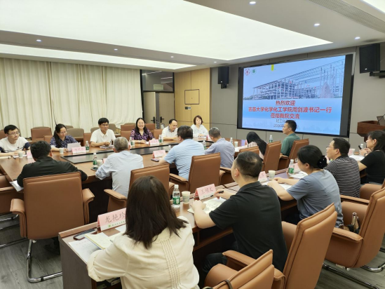 党委书记周东斌、副院长郑育英,化工系、食品系、化学系和实验中心等相关负责人在工学四号馆202会议室参加了交流活动。