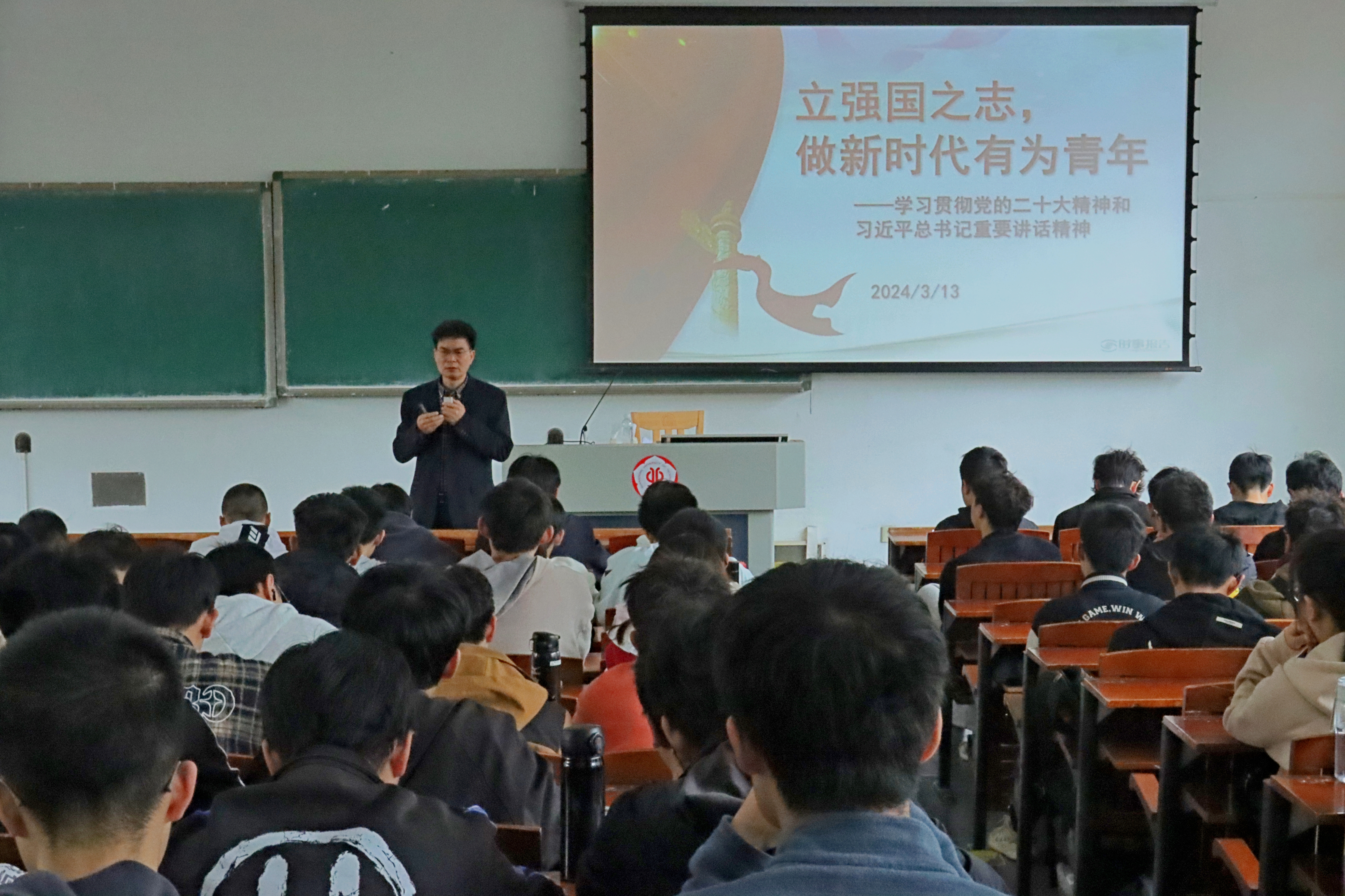为贯彻《广东省教育厅关于做好2024年春季学期大中小学校党组织书记、校长上第一堂思政课工作的通知》要求,坚持用习近平新时代中国特色社会主义思想铸魂育人,深入学习宣讲习近平文化思想,教育引导学生深刻领会这一思想的丰富内涵、核心要义和实践要求,3月13日上午,动漫狂 党委书记周东斌老师以《立强国之志,做新时代有为青年》为题,2022级化学工程与工艺专业学生讲授春季学期思政第一课