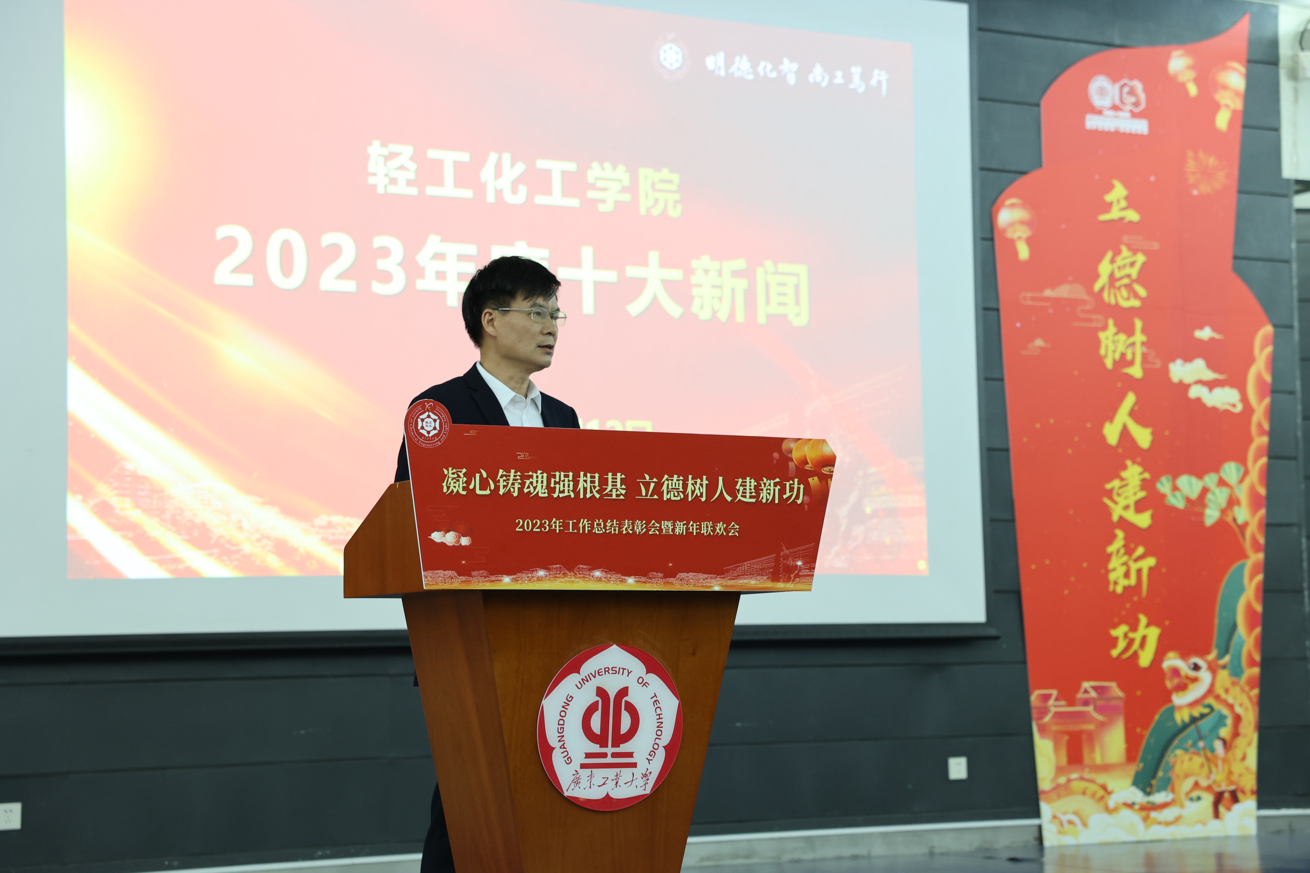 周东斌首先介绍了本学期新入职的教师,欢迎新鲜力量加入轻化学院大家庭。随后,他以《动漫狂 2023年度十大新闻》为题对过去一年学院在党建与思政教育、师资队伍建设、本科教育教学、人才培养、科学研究、对外交流合作、校友工作等方面的主要成绩和重点工作进行总结回顾。2023年,在学校党委行政的正确领导下,学院全体教职员工紧紧围绕“冲一流”建设目标,勠力同心,踔厉奋发,多项成绩实现了历史性的突破。他对老师们过去一年的辛勤付出表示肯定和感谢,希望大家在新的一年里继续保持干事创业奋斗精神,勇于担当,奋发工作,为学校高质量内涵式发展作更多贡献。