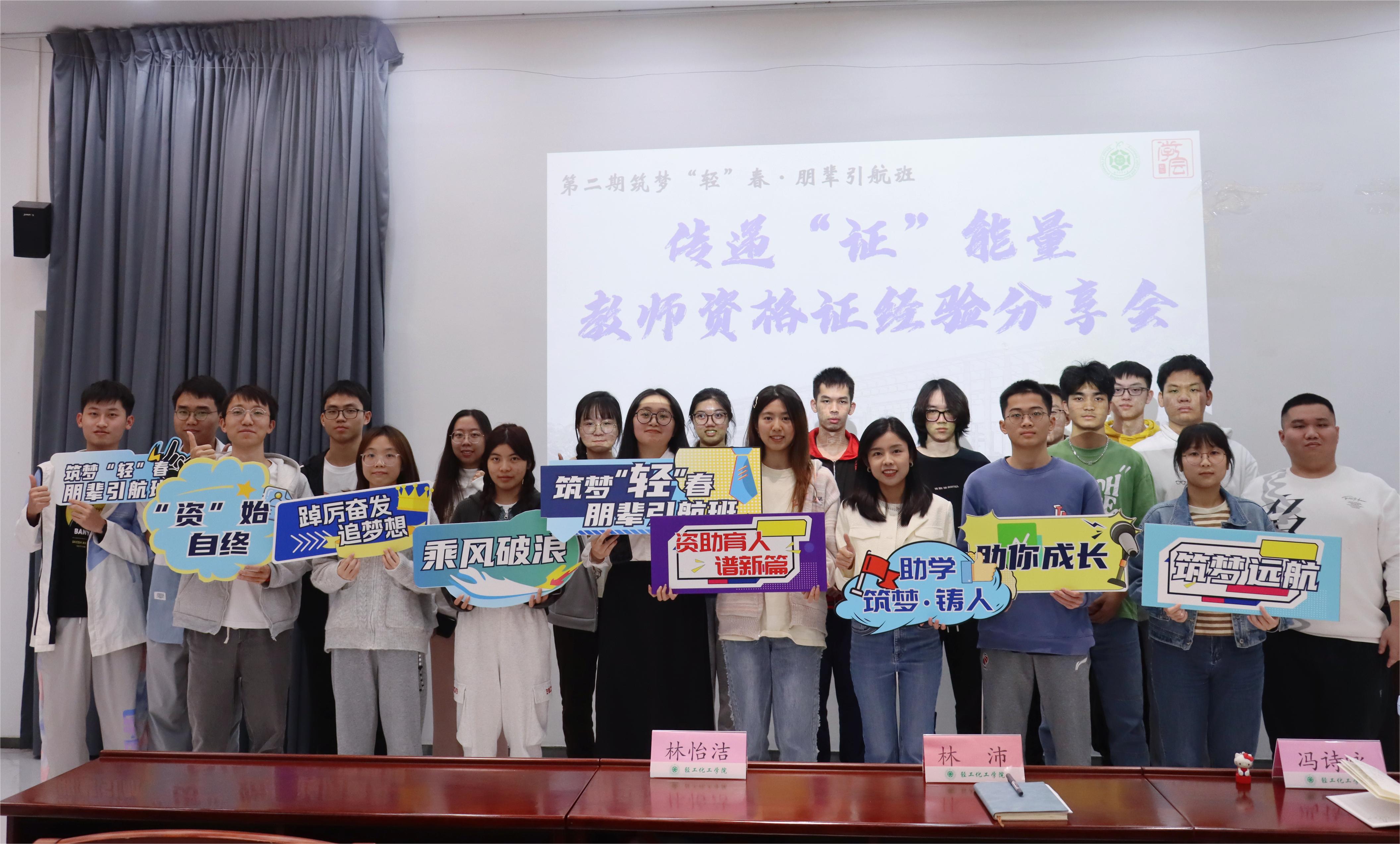 于在工四一楼会议室开展第二期“筑梦‘轻’春·朋辈引航班”,本期活动以“传递‘证’能量”为主题。学院学生工作助理委员会指导老师林沛,朋辈分享代表2020级应用化学4班林怡洁、2021级化学工程与工艺卓越班冯诗咏及近30名大二、大三本科生参加了本次活动。