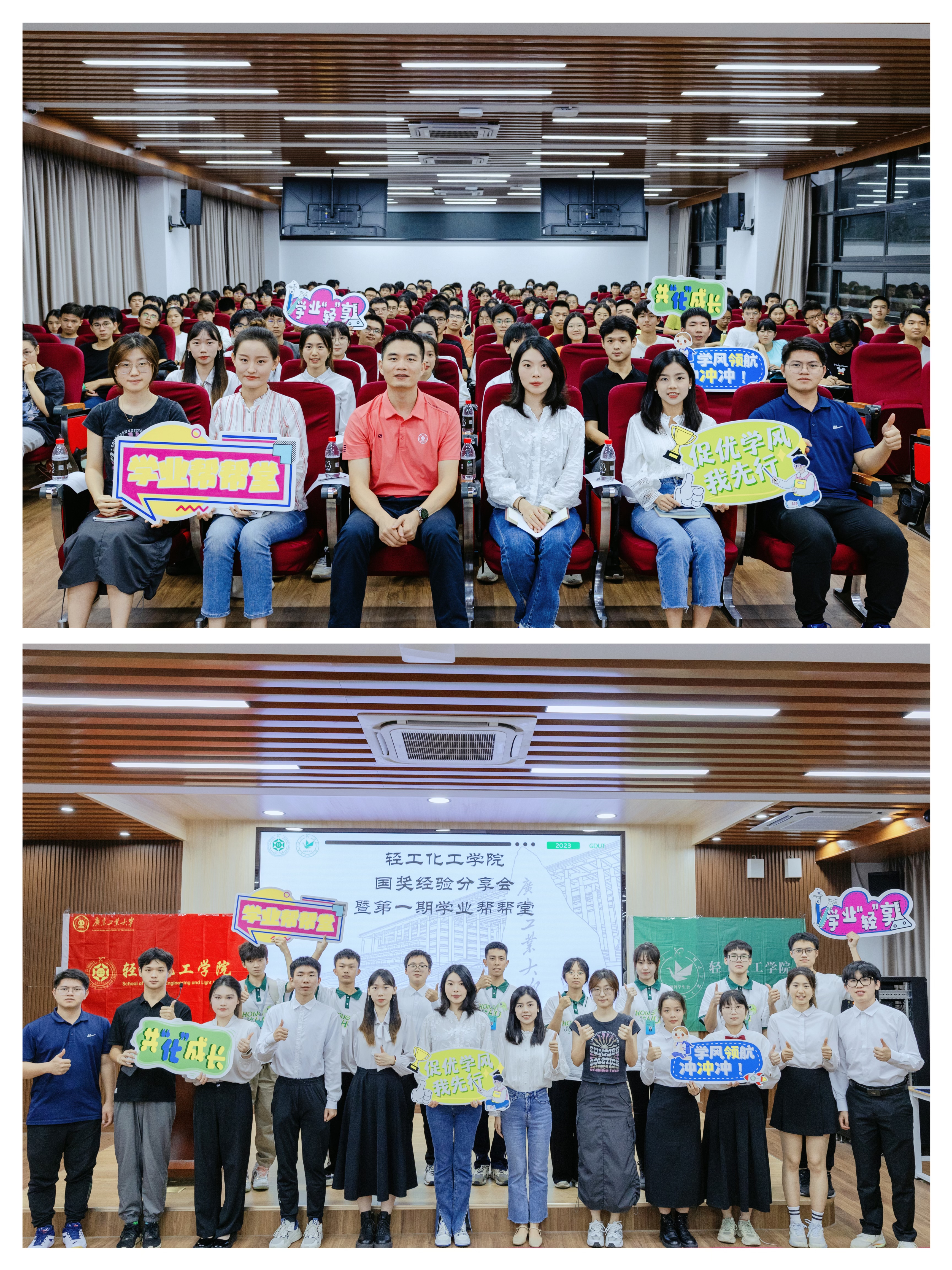 学生会于11月6日晚上在工三-208报告厅举办学业帮帮堂·第一期国奖经验分享会。学院党委副书记杨刚老师,学生会秘书长徐丹宁老师,辅导员郭佳欣老师、辅导员林沛老师、辅导员李舒老师、辅导员赖振鑫老师以及200余名同学参加本次活动。