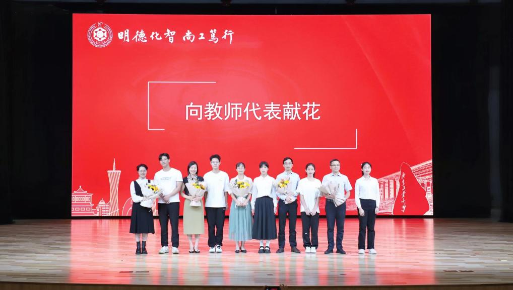 组织新生代表向教师代表献花。浓浓尊师意,芬芳满人间,同学们用一束束鲜花表达了对老师的感恩与敬爱之心。