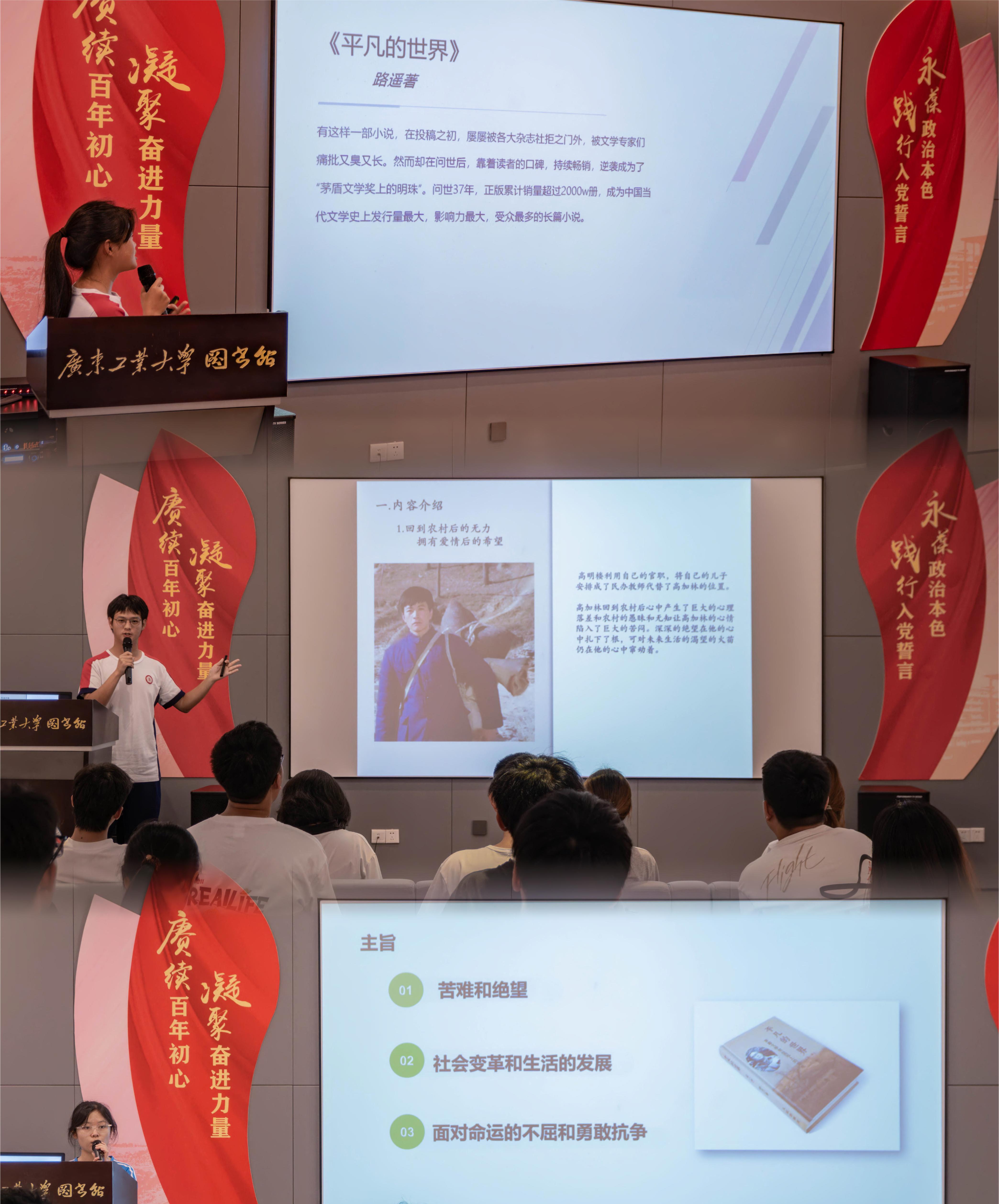 第一期“悦享读书会”的主题是路遥作品分享。学院2022级化学工程与工艺1班卢宝怡分享到:“平凡的世界,平凡的我们也会经历很多东西,也会有很多的无力。希望大家能够像农民一样去生活,即使这一次播种没有收获,但是我们依然能够心平气静的等到第二年,等到一个合适的时机再去播种。理想的书籍是智慧的钥匙,希望大家能够一直保持阅读,一直去体会,一直去感受。”2022级化学工程与工艺1班孙梓涵谈《人生》这本书讲到:“时代的洪流推着我们向前走,《人生》这本书向我们介绍了人生的漫长,人的追求、人的困境、人的感悟。而人生虽然漫长,但是紧要处常常只有几步,我们应该如何选择?我觉得《人生》这本书可以会给出你的答案。”2021级食品科学与工程1班赖金慧就《平凡的世界》分享到:“如果你也希望领略黄土高原上厚重的劳动者的土地情怀,也希望体会纯粹的朴实的友情、亲情、爱情,如果你也希望在浮躁的时代中寻找一处安放心灵的进步,推荐大家阅读《平凡的世界》这本书。”