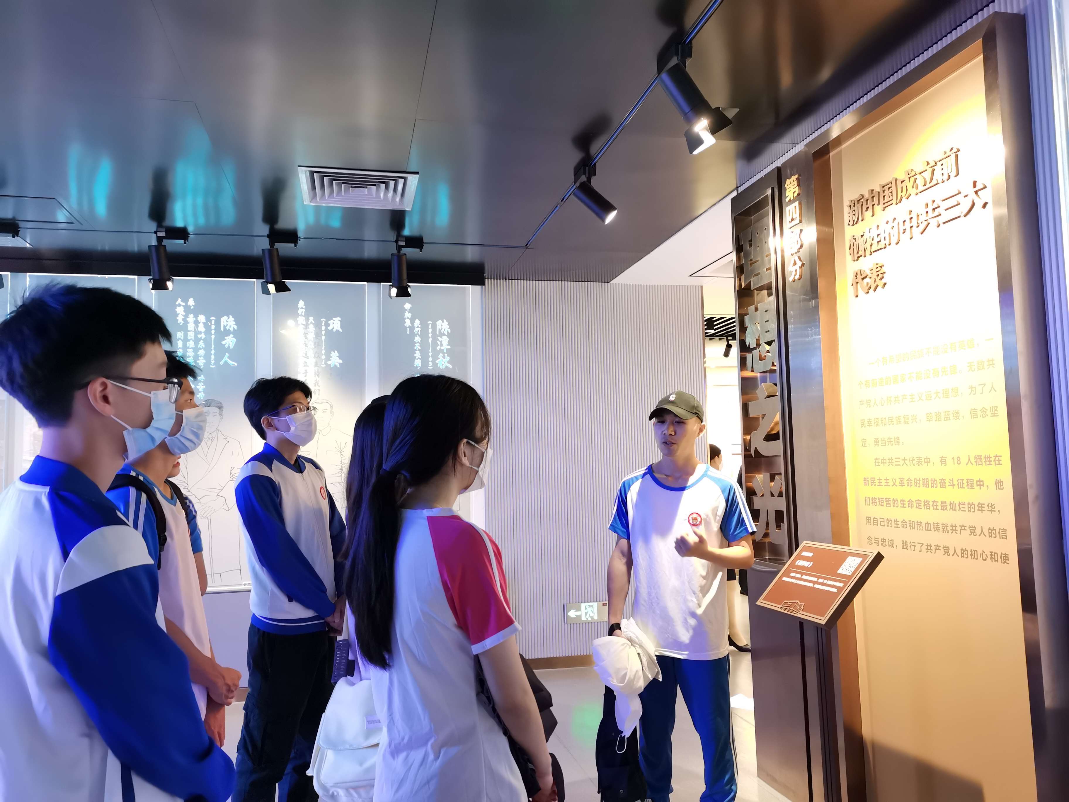 支部成员跟随讲解员,先后参观馆内“上下求索”“凝聚共识”“风起云涌”和“理想之光”的四个展出单元,逐一观看展出的文物、图表、油画雕塑及立体场景等,通过历史中的点滴细节深入了解中共三大召开的历史背景、会议过程与成果、会议影响与贡献等。实物展出、光影视听空间和全息投影设备让学生党员们重温了当年激荡人心的岁月,跟随着共产党人可歌可泣的故事深刻体会到了理想信念的感召力和革命情感的感染力。在参观过程中,同学们针对此行展开讨论,就中共三大的选址及历史背景学习领会党的不懈奋斗史、不怕牺牲史、理论探索史、为民造福史、自身建设史,深刻认识中国共产党为什么能、马克思主义为什么行、中国特色社会主义为什么好的内在逻辑,把党的红色基因、红色家谱、红色血脉发扬好、传承好,以更加昂扬向上的精神风貌投入到新时代新征程的伟大事业之中。