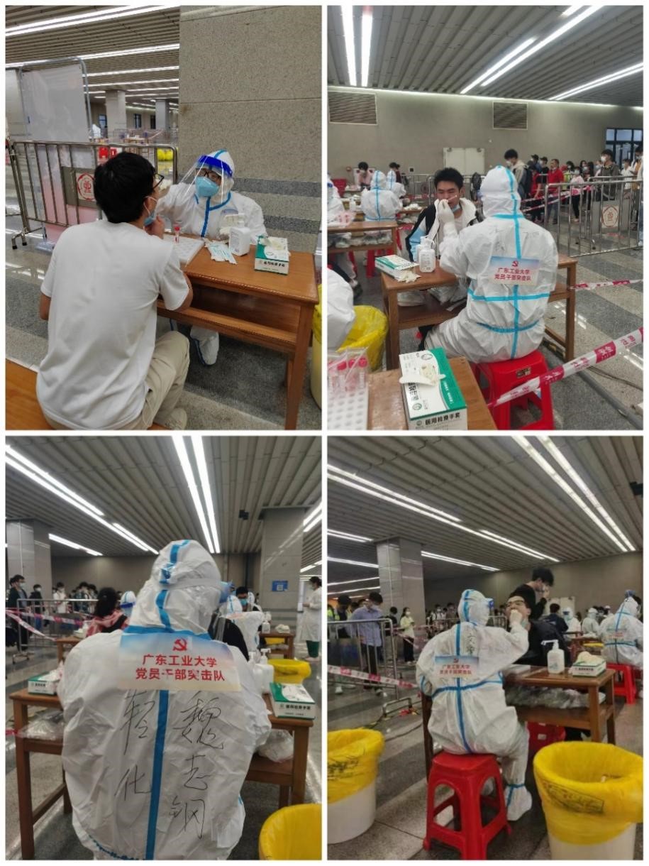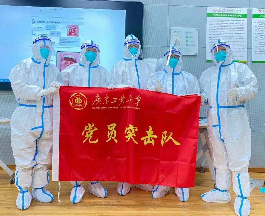 应用化学系党支部迅速吹响助力全员核酸检测工作的“集结号”,支部书记何军带队,汪成、魏志钢、林文静,与来自学院其他党支部、办公室的林晓清、姬文晋、廖晨艳共7名教师主动请缨加入学校疫情防控突击队,首批变身“大白”助力核酸检测采样工作。这是继校园核酸检测秩序维护和指引、生活区临时管控期间取送快递、报名参加学校党员干部全力支持广州打赢本轮疫情突击队后,支部成员又一次以实际行动和责任担当,积极响应学校学院党委的号召,共同筑牢校园疫情防控“安全墙”。