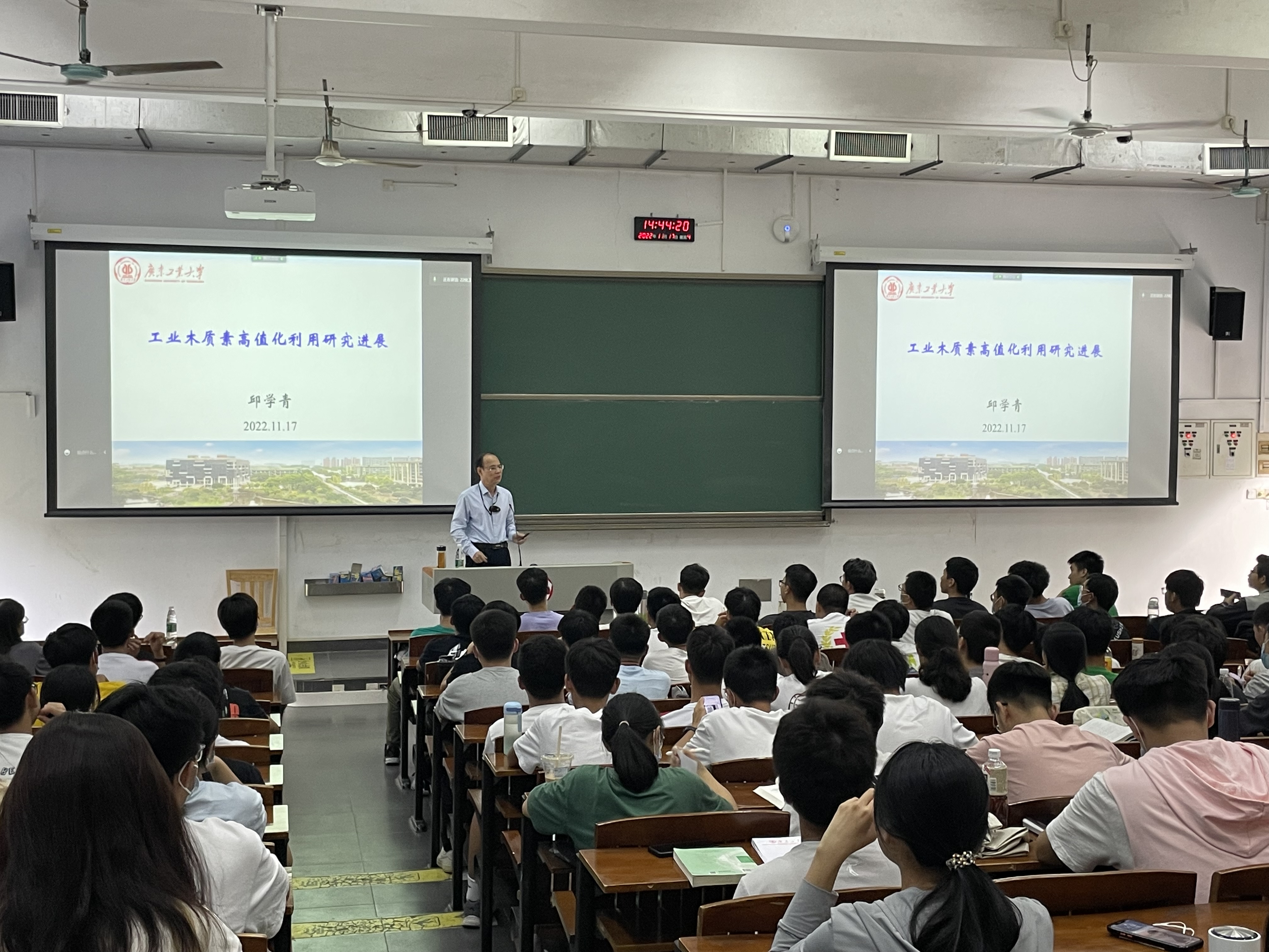1117日下午,动漫狂 校长邱学青教授在百忙之中为大学城校区化学工程与工艺专业2022级近200名新生带来了题为《工业木质素高值化利用研究进展》的专业导论课。能够有机会聆听校长为大家讲述专业导论课,同学们既兴奋又期待。