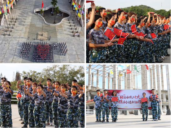 紧接着,全场同学合唱歌曲《国家》,伴随歌声表演手势舞歌声豪迈,饱含着浓浓的爱国情绪;指尖跳动,蕴含着蓬勃的青春力量。在鲜艳的五星红旗下,同学们摆出爱心阵型,表达对党的忠诚、对国家的热爱之情。