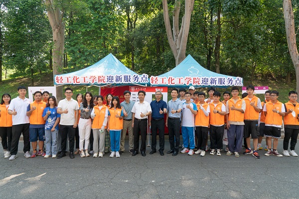 迎来了440名2022级本科新生以及326名2022级研究生新生。当日清晨,学院领导老师和参与迎新工作的同学早早来到迎新服务点,整装待发,静候“小轻新”的到来。