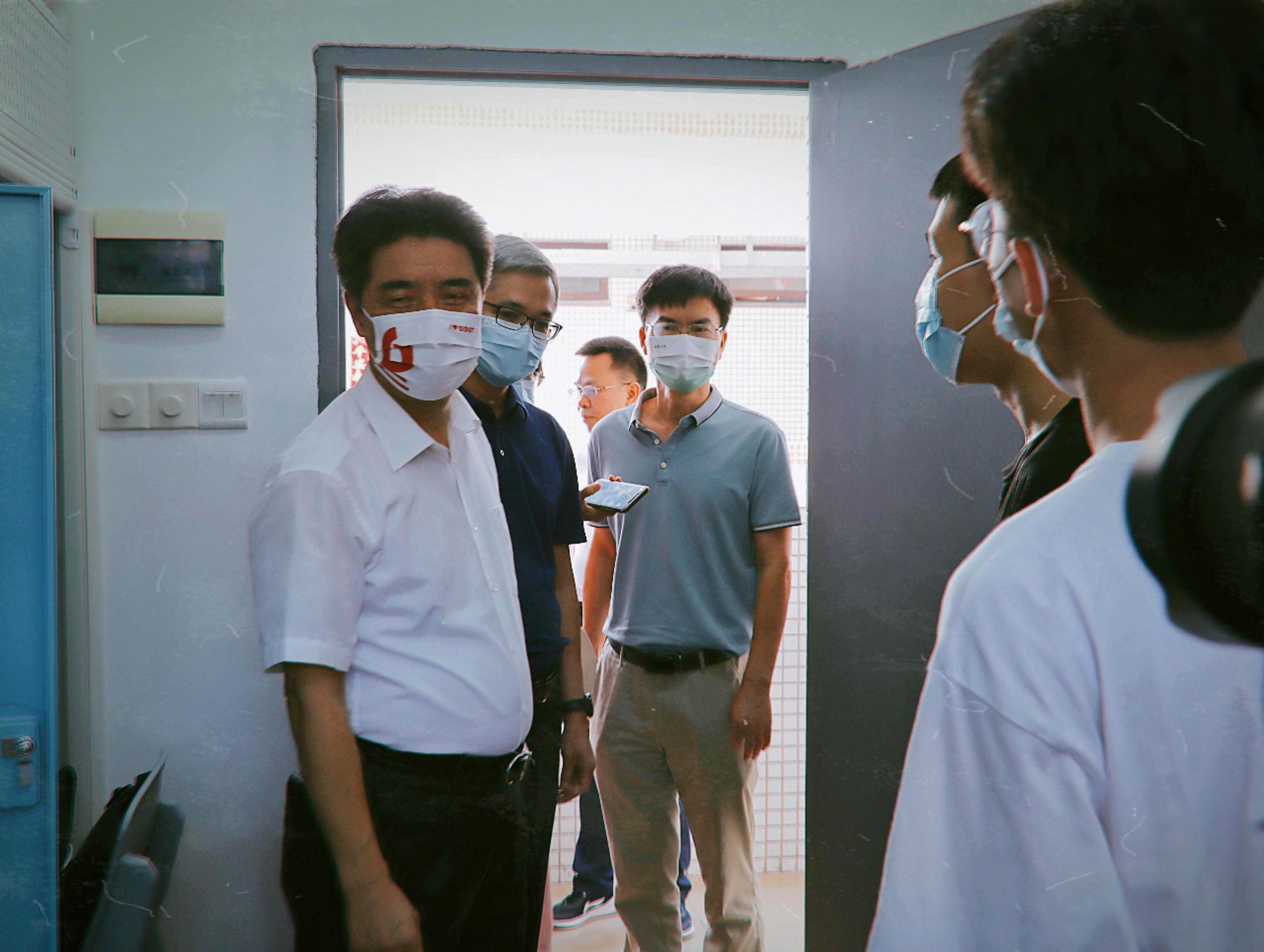 新生。胡书记十分关心新生们初入大学校园的适应情况,亲切询问了同学们在住宿、饮食方面的情况。“感觉到了广工就像回到了自己家一样,宿舍环境特别好,非常适应!”2022级应用化学4班何子洋、杨俊威同学向胡书记表达着自己对学校的第一感觉,“进学校时,还有师兄师姐帮忙拿行李,真是格外亲切!”2022级化学工程与工艺1班杜锦辉同学指着早已由新生学长摆放在宿舍桌上的“暖心小礼包”说:“一到宿舍就看到辅导员的亲笔信、心想事‘橙’和时运‘旺’盛的祝福、还有学院定制的中国红、轻化绿口罩,非常暖心,很有归属感。”离别时,陈卓武副校长还不忘叮嘱同学们入校后要注意疫情防护和人身财产安全,谨防上当受骗。随后,胡钦太书记一行来到学院迎新服务点,指导迎新工作,看望参与迎新工作的师生。