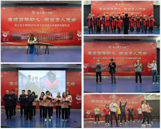 在大学城校园举行2022年“赓续百年初心担当育人使命”年终总结表彰暨新年联欢会。学院全体教职工约170人参与了会议。