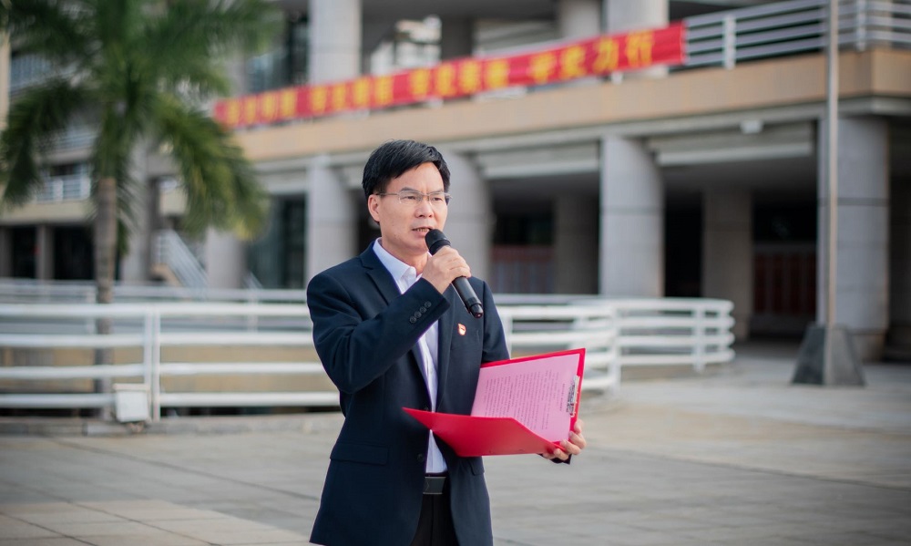 在国旗下,2021级应用化学3班邓冠东同学作为学生代表发言,鼓舞同学们抓住青春年华,坚定“读万卷书”的志向,葆有“行万里路”的气魄,把学习作为首要任务,自觉担负起时代赋予的使命和责任。