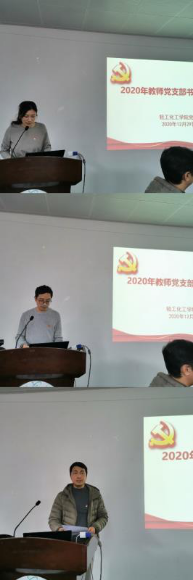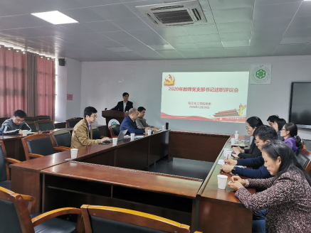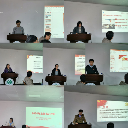 接着,学院各教工党支部书记就一年来党建工作情况依次进行了述职。过去一年来,各党支部以习近平新时代中国特色社会主义思想为指导,紧跟时代步伐,强化思想建设,“两学一做”学习教育常态化,严格党支部“三会一课”等组织生活制度,组织党员按期参加党员大会、党小组会和上微党课,定期召开支部委员会会议,积极开展形式多样的组织生活。在疫情期间,各党支部积极发挥支部的战斗堡垒和党员的先锋带头作用,全体教师党员加强职业操守,坚定信心,压实责任,细化工作,担当作为,关爱学生,带领师生积极做好疫情防控、线上教学及“复工复学”等工作。各党支部结合具体工作职责,将党建工作与业务工作结合起来,探索展开党建工作促业务系列活动,建设党建特色活动,让组织生活“活”起来。