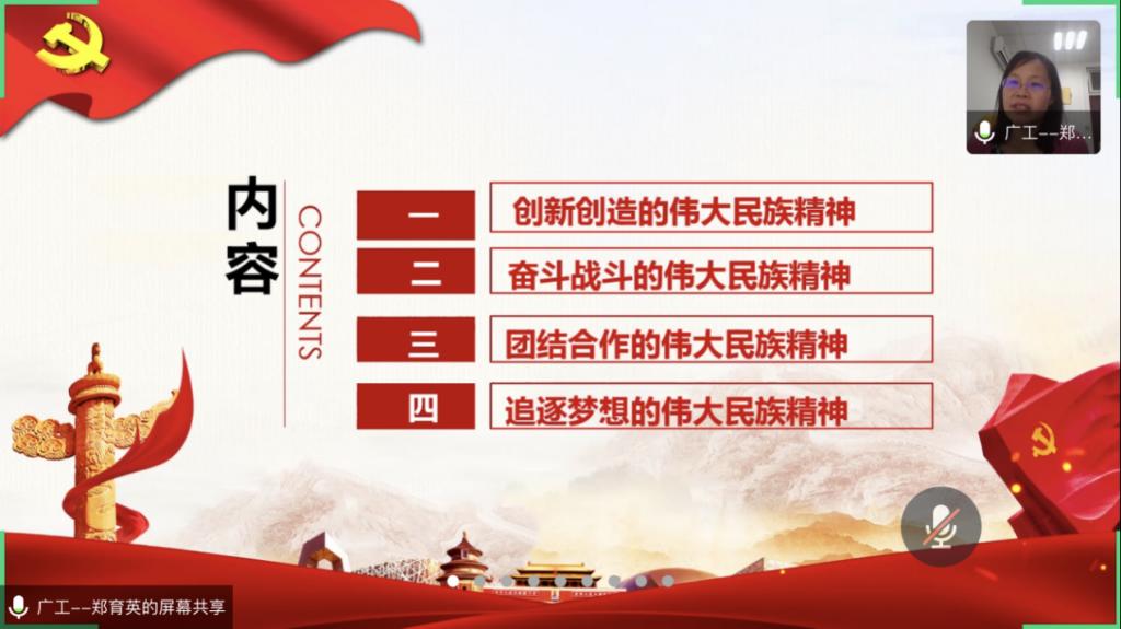 首先,郑育英同志为全体教师做了《在疫情大考中锤炼伟大民族精神》的主题报告,鼓励全体教师在疫情期间坚定党的领导,锤炼“创新创造、奋进战斗、团结合作及追逐梦想”的伟大民族精神。指出,这次疫情防控期间停课不停教、停课不停学,网络教学的形式授课,对老师的教学理念、教学方法和教学实践都是一种新的挑战,鼓励各位党员同志、各位老师在实际教学工作中“立足本职,勇于担当”,并希望年轻老师积极加入党组织。