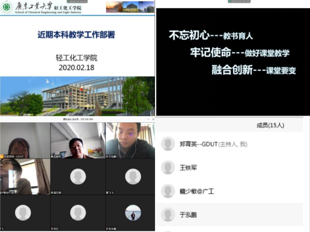 会议的第二部分,各系领导积极发言汇报了目前系里的教学安排和存在的问题。针对各系存在的关键与突出问题,王院长给予了清晰明确的指导;同时王铁军院长于食品工程与科学专业的专业认证给予了极大关心与指导,希望食品专业有更好的发展。与会人员还就在线教学和毕业论文指导工作,互相分享了经验,将引导系里老师做好特殊时期的各项教学工作。