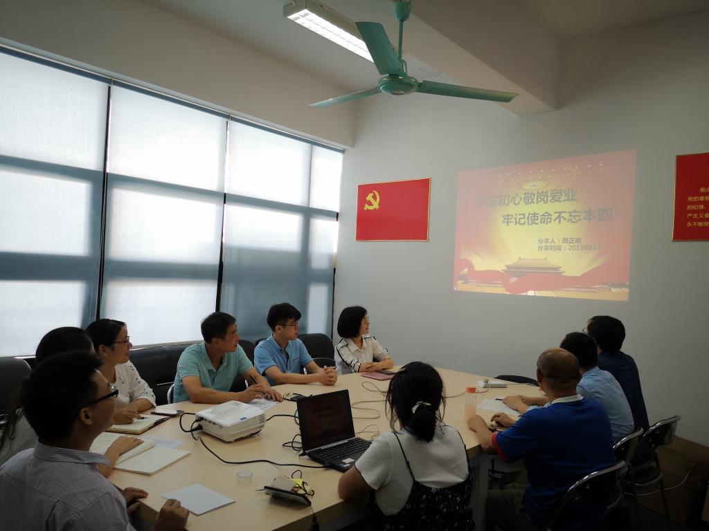 首先,党支部书记何军同志向全体党员同志传达学校“不忘初心、牢记使命”主题教育动员会议精神和学院党委具体要求,强调了主题教育的重大意义:这是以习近平同志为核心的党中央统揽伟大斗争、伟大工程、伟大事业、伟大梦想作出的重大部署,所有党员同志都要提高政治站位,深刻领会主题教育意义。何军同志希望支部成员都要牢记陈新书记、校长的动员大会上的讲话精神,高度重视主题教育,任务上身,责任上肩,使命上心,积极主动参与到本轮主题教育活动上来。