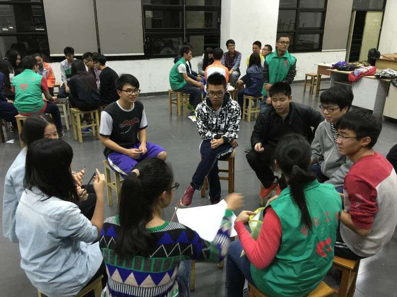 活动一开始,主持人就进行一个热身活动,活跃现场气氛。接着通过报数的形式将在场的人员分成四组,每组各挑选一名队长,主持人要求在三分钟内认识队内的人员,确定好队名,口号,队徽,并上台展示。随后通过进行解手链,小船载人过河等游戏,让同学们在游戏中收获快乐和团队合作精神的核心。在此次活动的最后,土木学院的辅导员刁老师为这次交流会做了总结,他强调,做好自己的本职工作,认认真真的服务好自己的班级才是一个班干真正应该做的事。