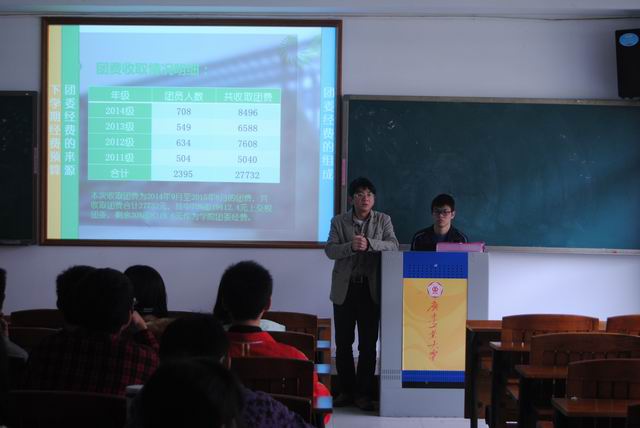 会议由林焕章老师对2014年团费使用情况向各位代表进行通报,他主要介绍了团委经费的组成、来源、收缴、支出、预算和结算等情况。同时他指出,学院的团费主要来自学院的各位团员,作为一名共青团员,有义务按期缴纳团费,也有权利监督团费的使用情况。动漫狂 团委将秉承公开公正透明的原则,鼓励团员们共同参与团委的民主建设,一起监督团费的使用,把每一分钱都用在刀刃上。他也要求学院团委尽快出台团费使用预算决算方案,制定相关制度,通过团费预算决赛方案,推动同学们参与学院团委工作,促进学院团委工作的发展。