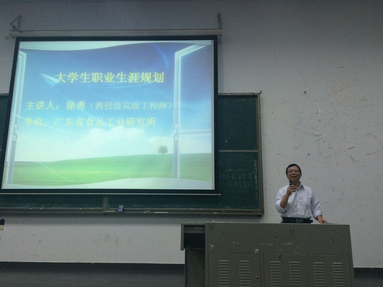 承办的就业讲坛第93讲在一号大课室成功举办。论坛邀请了广东省食品工业研究所总工程师兼科技管理部部长徐勇教授作为主讲嘉宾,为同学解答大学生应当如何进行职业生涯规划。轻化学院14级辅导员毛元渊老师及近500名学生聆听了此次讲座。
