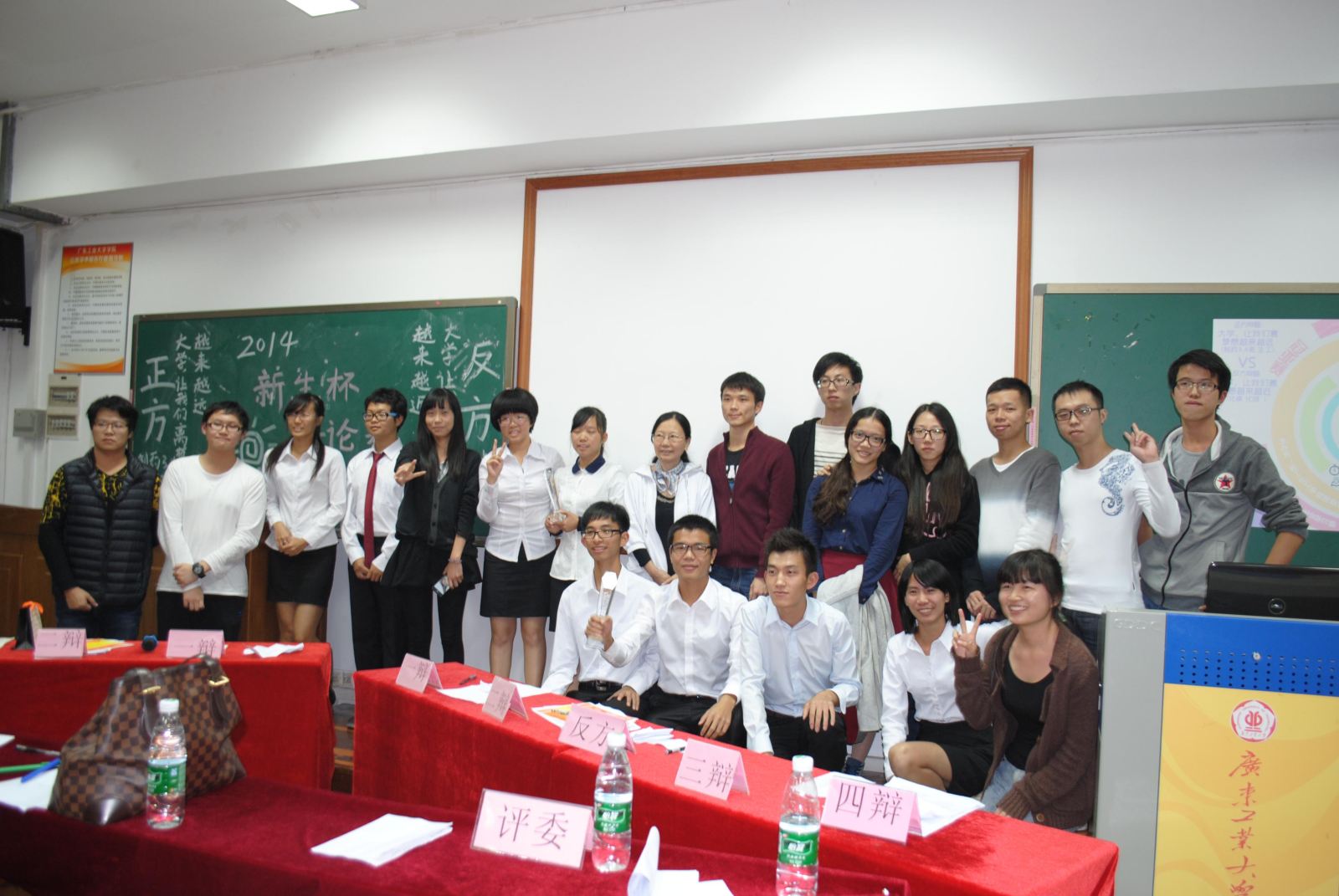 2014年“新生杯”辩论赛决赛在工三208激情上演,分别来自14制药3、4班、生物工程班,化工3班,14应化1班、化工1班,14卓越工程师班、创新班,共四支队伍打入决赛,展开巅峰对决。2014级卓越工程师班班主任黄宝华老师、学院学生会主席李彦霖出席本次比赛。